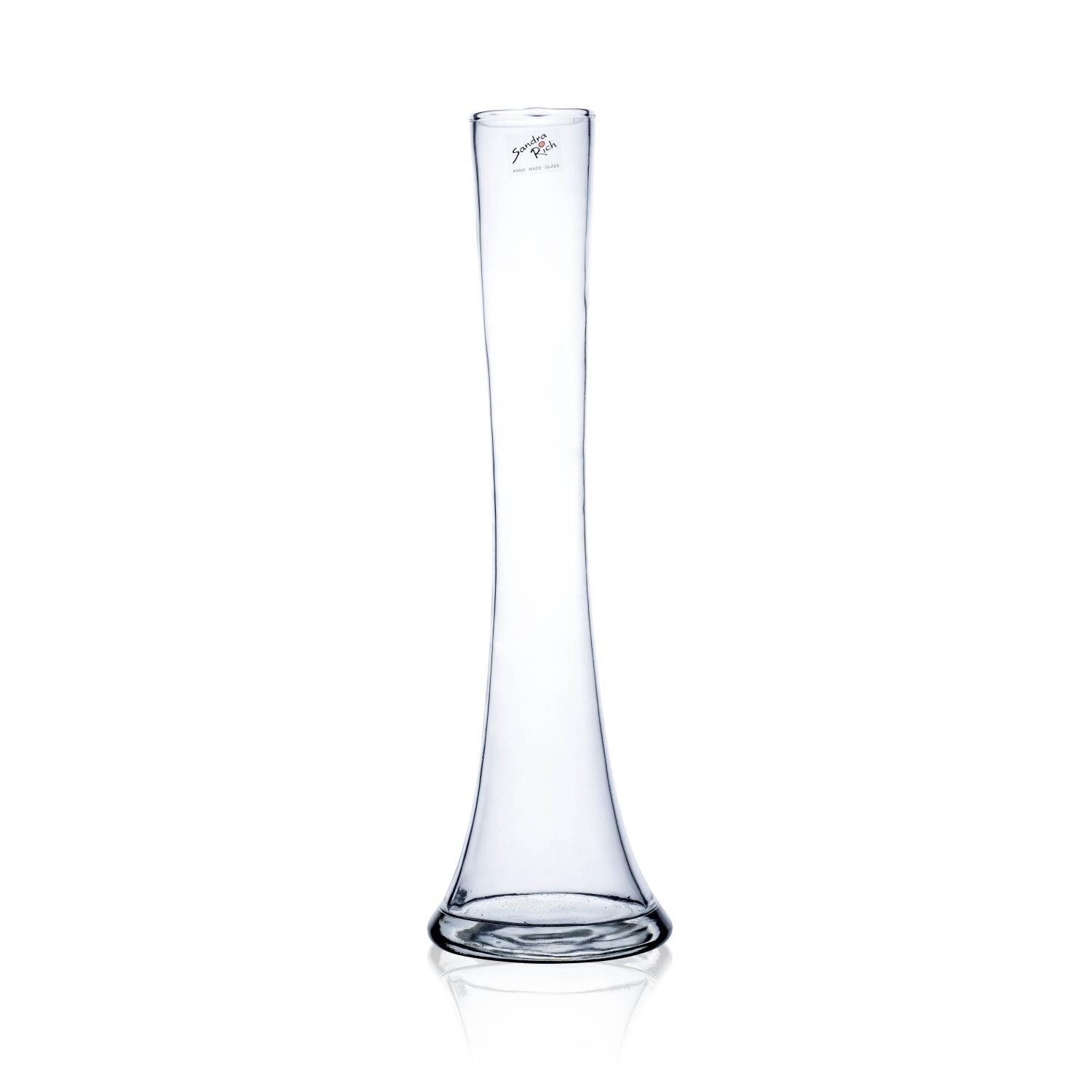 "Schönes aus Glas" von der Firma Sandra Rich GmbH.Hier finden sie Vasen, Dekoartikel, Glasschalen und vieles mehr. Wenn Sie einmal eine richtig große Vase brauchen, ist die „Big Solifleur X“ genau richtig. Diese außergewöhnlich große Glasvase aus dem Hause Sandra Rich hat eine Höhe von 60 cm. Am oberen Rand beträgt der Durchmesser etwa 9 cm unten etwa 17 cm. Mit ihrer abgerundeten Kante (hot cut) fügt sich die schlanke konkav geformte Glasvase hervorragend in jeden Einrichtungsstil ein. Als einzelne Vase ist sie für die Aufnahme langstieliger Blumen wie zum Beispiel Rosen, Gladiolen oder Orchideen ganz besonders geeignet. In Kombination mit anderen Vasen eröffnet sich Ihnen ein ganzer Kosmos an kreativen Deko-Möglichkeiten. Die „Big Solifleur X“ wird ohne Dekoration geliefert. Die Wandstärke beträgt 45 mm.Sorgt für ein modernes Ambiente. Lieferumfang: 1 Blumenvase BIG SOLIFLEUR H. 40cm für Einzelblumen Maße: Höhe 40cm, Durchmesser (Gesamt) 11cm Farbe: transparent, klar Material: Glas (Hand Made / Mundgeblasen) / Hot Cut ( umgeschlagender / geschmolzener Rand) Lieferung ohne Dekoration Bitte beachten Sie, dass unebene Innenböden, vereinzelte Lufteinschlüsse und eine kleine "Nase" am oberen Rand produktionsbedingt nicht zu vermeiden sind.