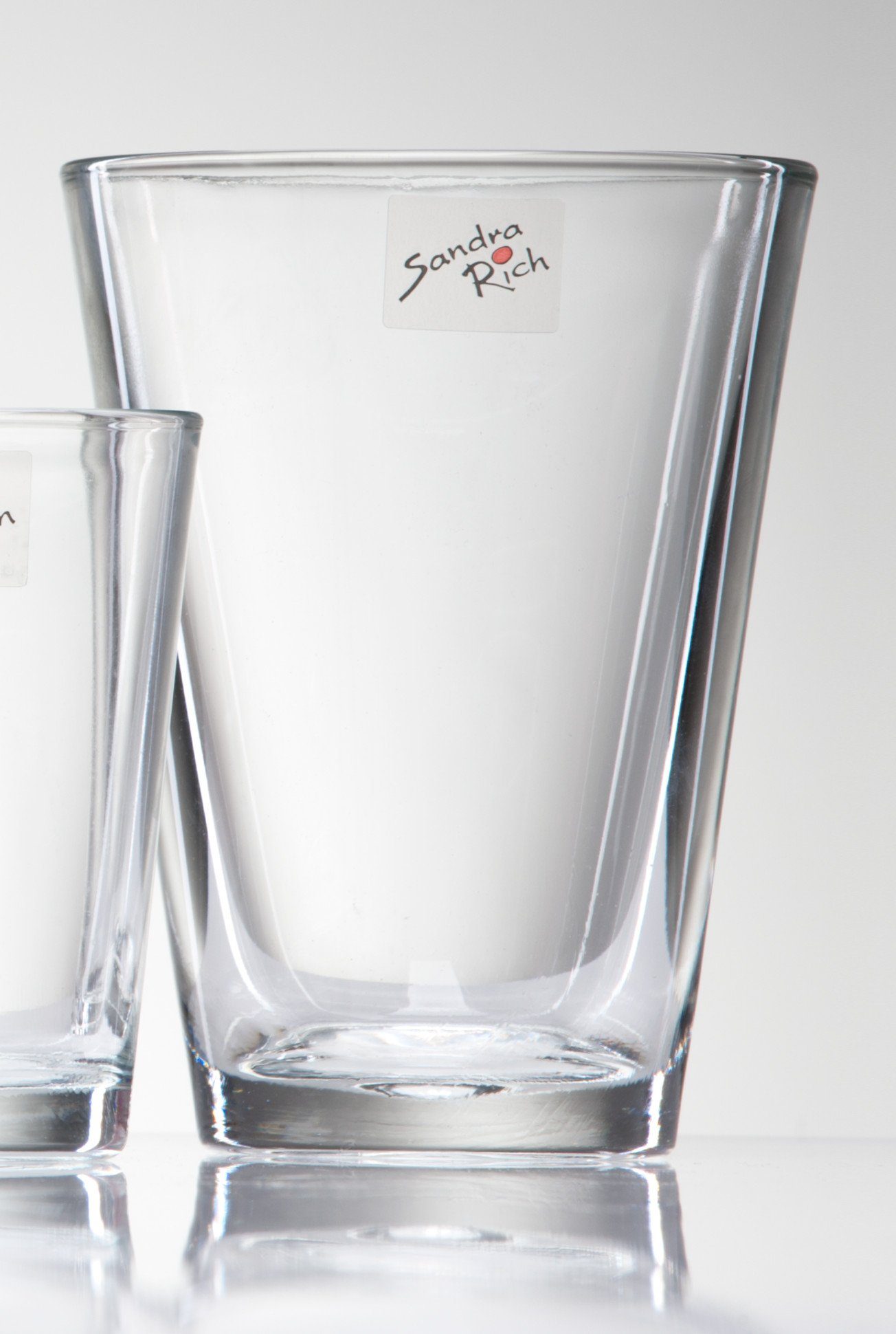 Lieferumfang: 1 Glasvase Marke: Sandra Rich Serie: Coni Material: Glas Höhe: 15 cm Durchmesser: 11 cm Farbe: Klar Wandstärke: ca. 0,45 cm Durchmesser unten: ca. 7,0 cm
