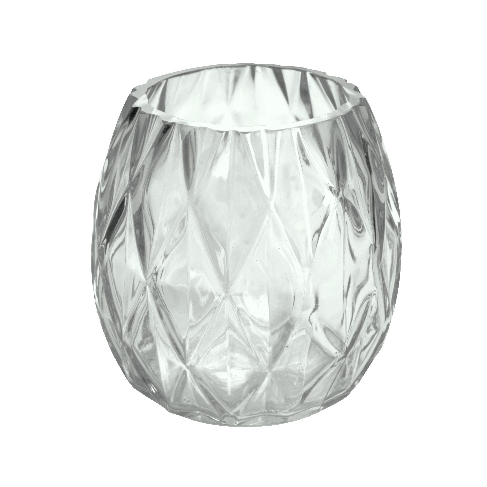 Verleihen Sie Ihrem Zuhause mit diesem eleganten Teelichtglas mit Diamantmuster einen Hauch von Luxus und Stil. Mit einer Höhe von ca. 9 cm und einem Durchmesser von etwa 8,5 - 9 cm strahlt dieses Glas eine zeitlose Schönheit aus.