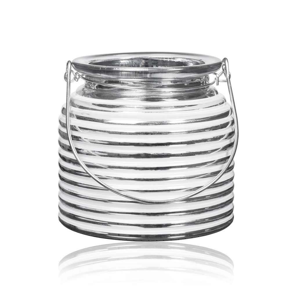 SANDRA RICH, GLASLATERNE WHITE RELIEF Silber WEISS 10,5cm.
