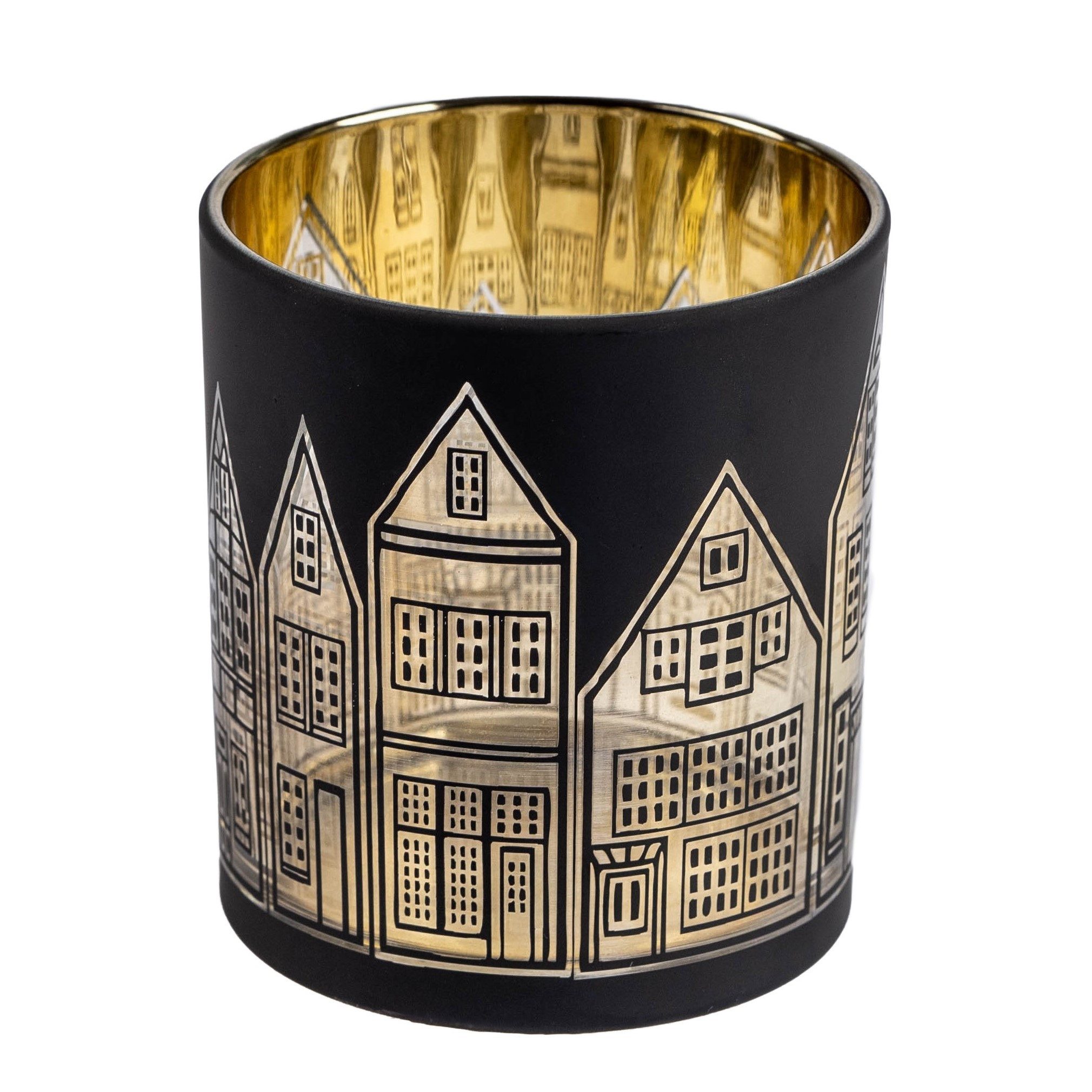 SANDRA RICH Teelichtglas "HOUSE" Windlicht Schwarz / Weißgold