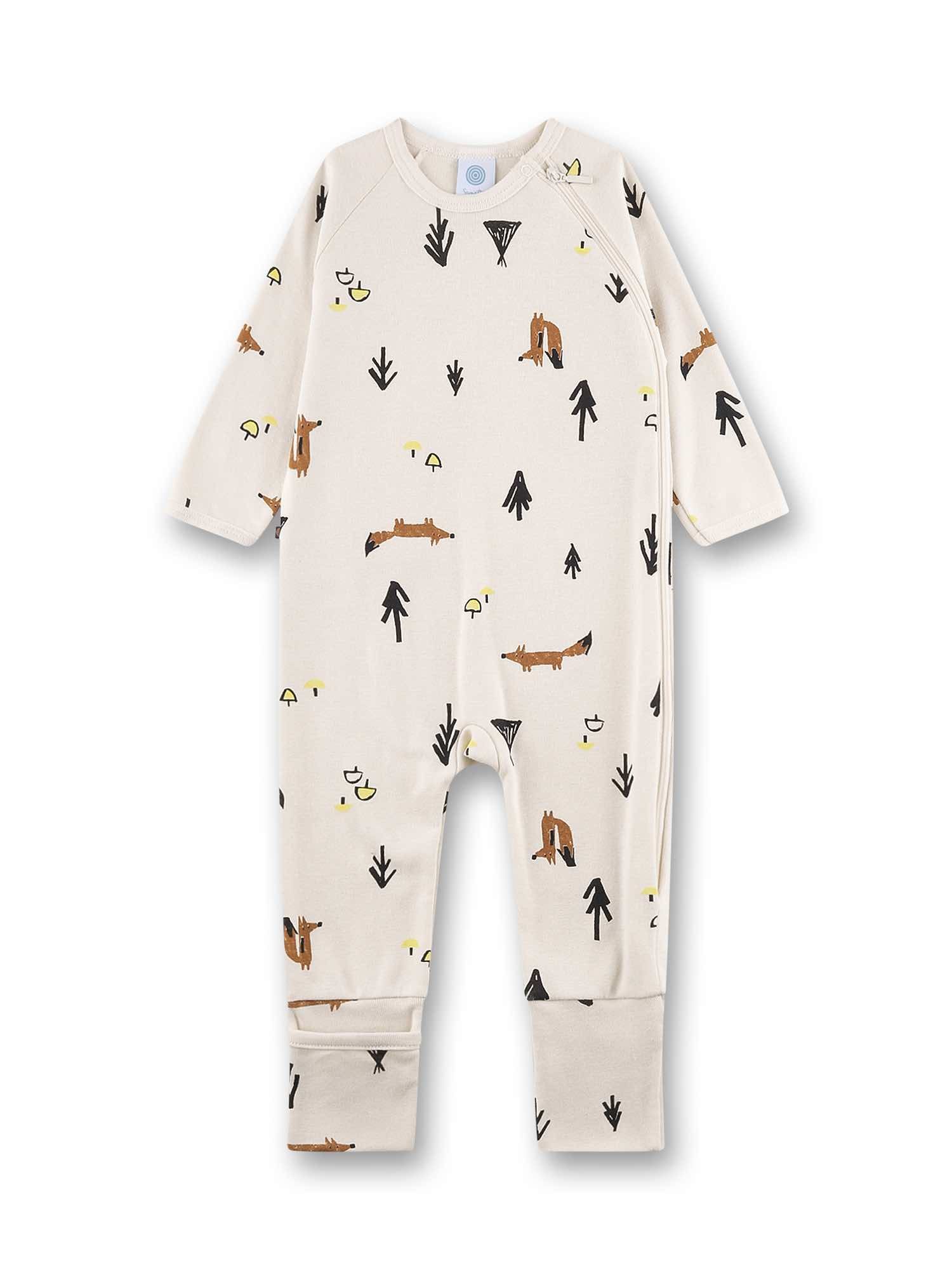 Baby-Schlafoverall von Sanetta in Ecru mit Wald- und Fuchs-Print