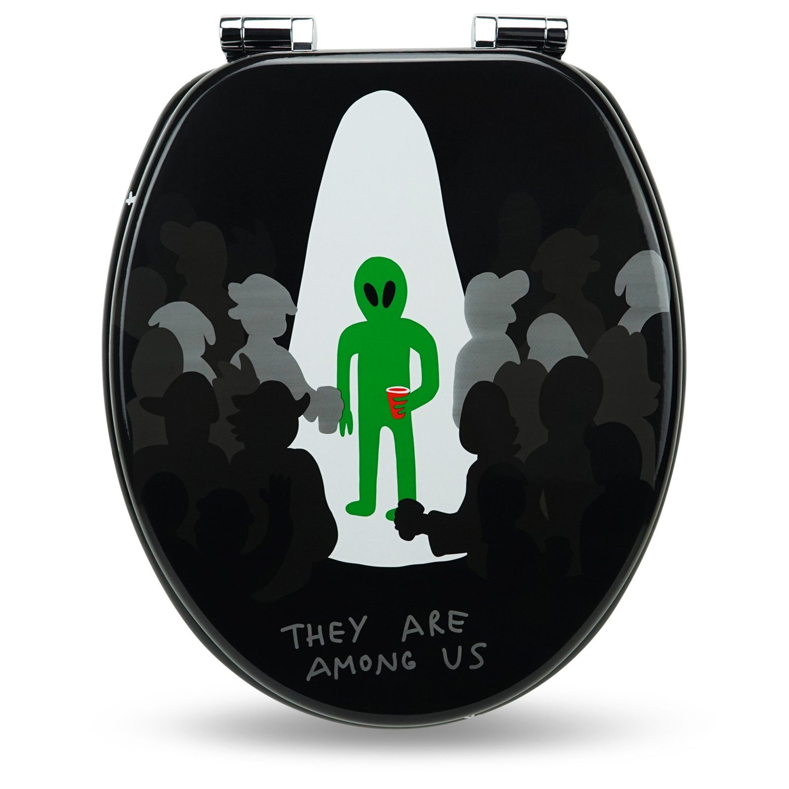 Sanfino WC-Sitz "Alien" Premium Toilettendeckel mit Absenkautomatik aus Holz, mit lustigem Alien-Motiv, hohem Sitzkomfort, einfache Montage