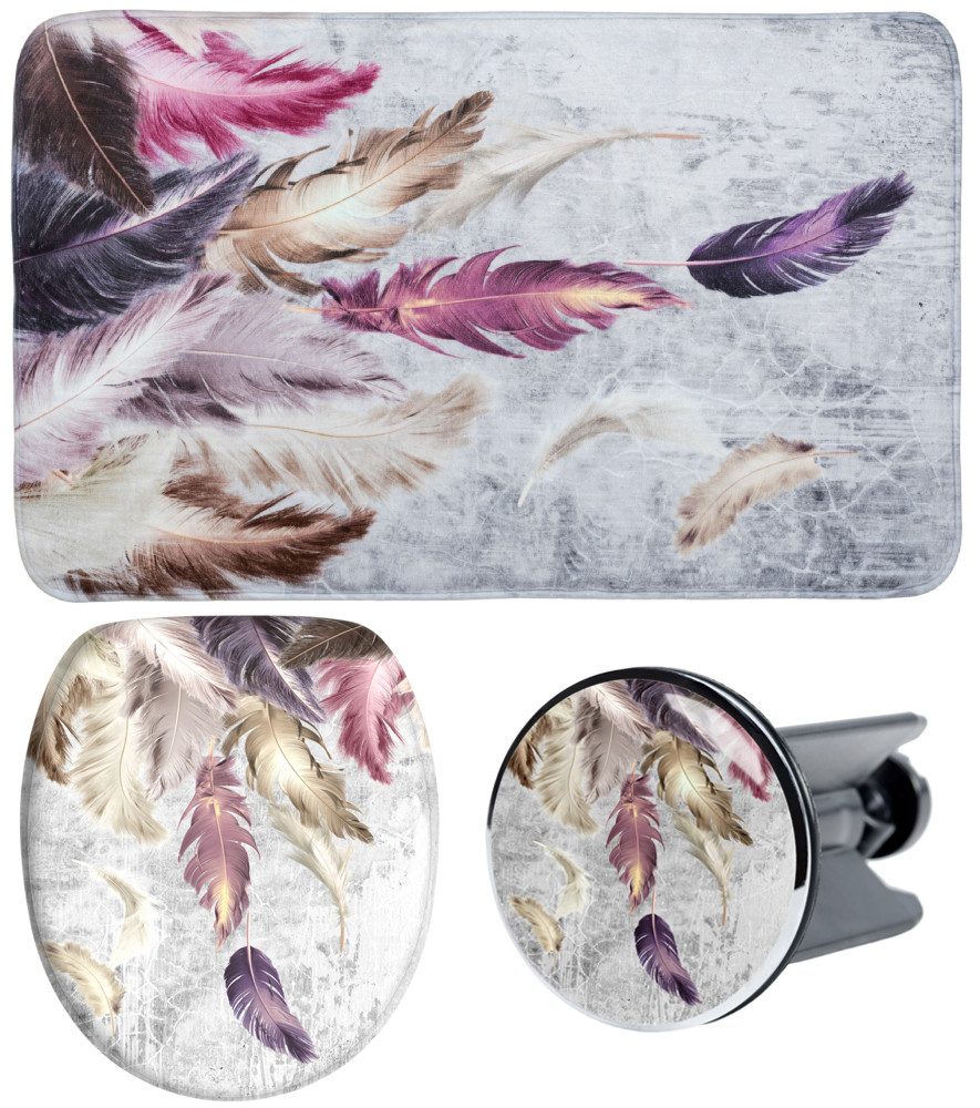 WC-Sitz mit Absenkautomatik Badteppich 70 x 110 cm Waschbeckenstöpsel