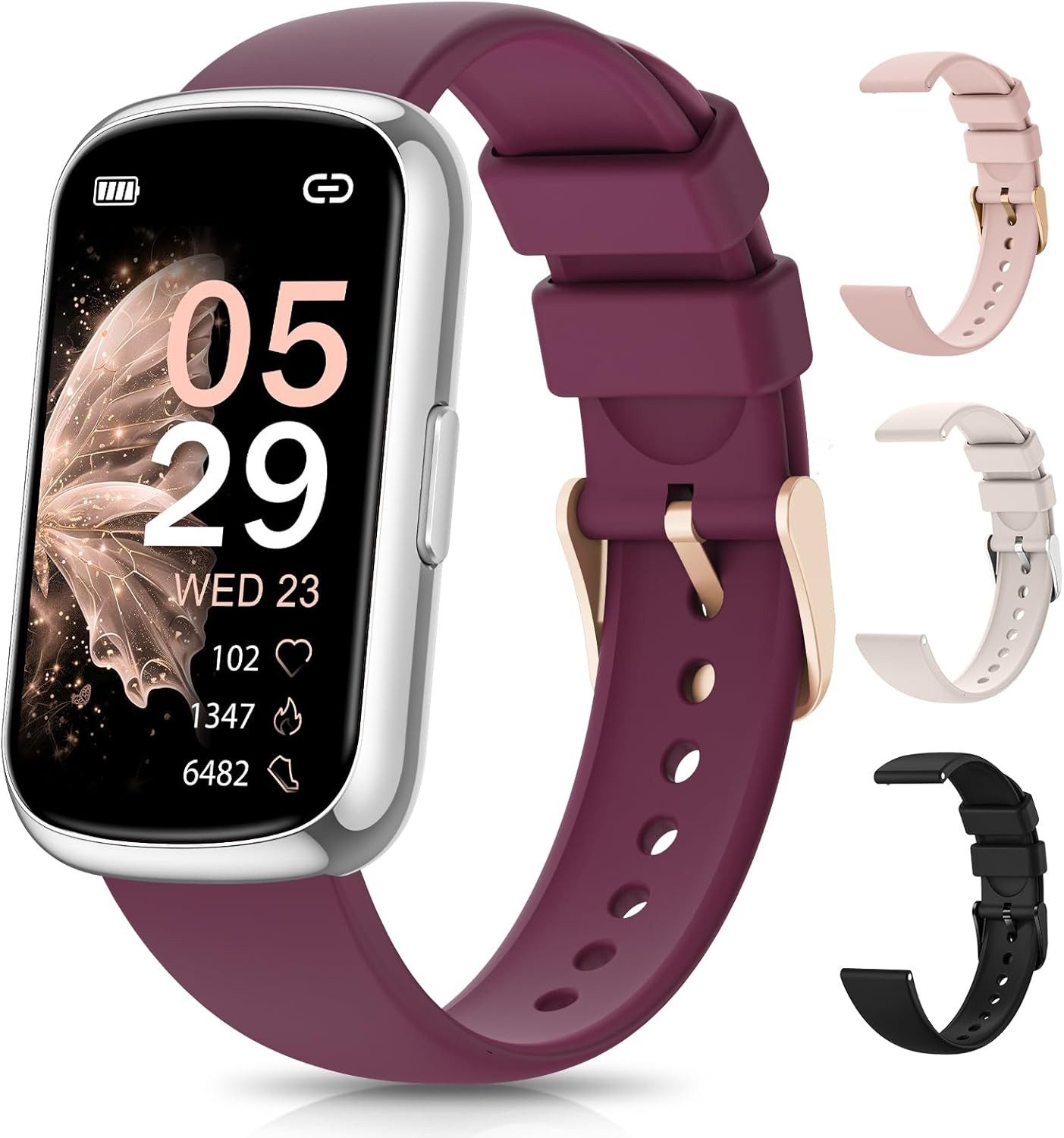 Damen Smartwatch, 1,47 Zoll Fitnessuhr, Pulsmesser, SpO2-Schlafmonitor, 24 Sportmodi, Aktivitätstracker, 4 Uhrenarmbänder, Menstruationszyklus, Schrittzähler, Sportuhr, Wasserdicht IP68