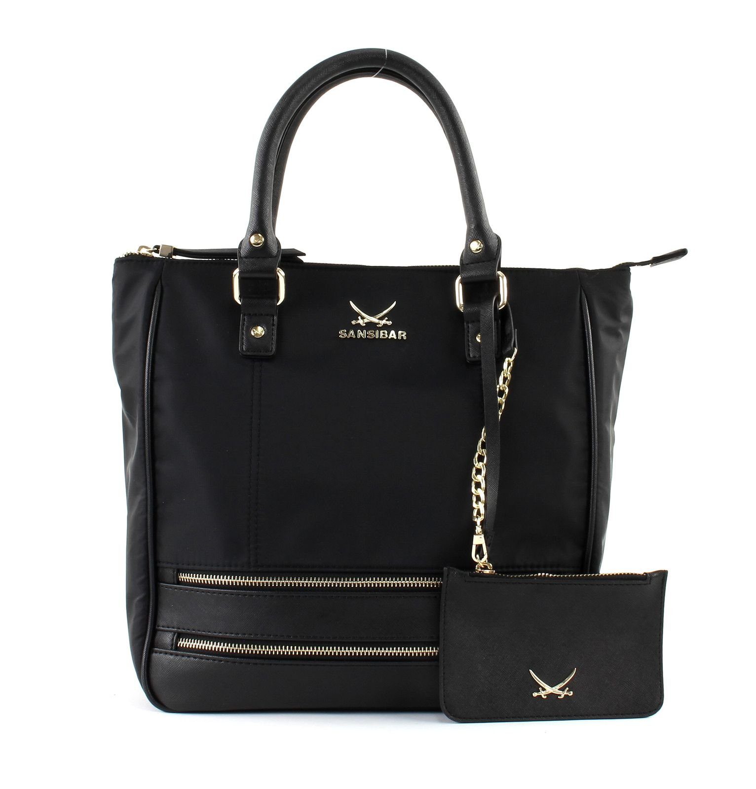Stilvolle und trendige Henkeltasche der Marke Sansibar aus strapazierfähigem Nylon mit Sansibar-Logo aus Metall und schönen Zierreißverschlüssen auf der Vorderseite. Die Tasche in modischem Design überzeugt durch ihre hochwertige Verarbeitung und ihre Funktionalität. Sie verfügt über ein geräumiges unterteiltes Hauptfach und weitere zahlreiche Fächer für Wertsachen, Handy, Stifte, Kreditkarten und anderes. Zusätzlich ist die Tasche mit abnehmbarer Reißverschluss-Tasche ausgestattet, die als kleine Geldbörse oder Kosmetiktasche verwendet werden kann. Mit abnehm- und längenverstellbarem Umhängeriemen.