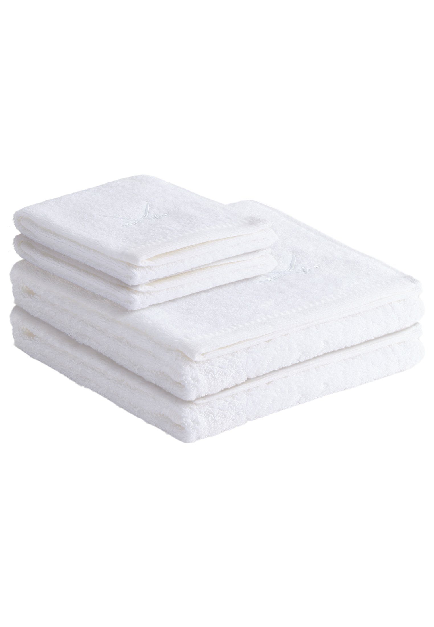 Das Sansibar Handtuch Set aus der Frottier-Kollektion „Classic“ überzeugt mit einer extra flauschigen Qualität und ist zu 100 % aus hochwertiger Baumwolle gefertigt. Die Pflegeleichtigkeit und Trocknereignung machen dieses Set besonders praktisch im Alltag. Mit einem schmalen Format, stabilen Bündchen und einem praktischen Kurbel-Aufhänger zeigt es höchste Funktionalität und ein ansprechendes Design. Die hochwertige Ton-in-Ton Sansibar Stickerei unterstreicht den eleganten Stil des Sets. Es enthält zwei Gästetücher (30 × 50 cm) und zwei Handtücher (50 × 100 cm), die perfekt auf die Bedürfnisse von Liebhabern modernen Lifestyles abgestimmt sind.