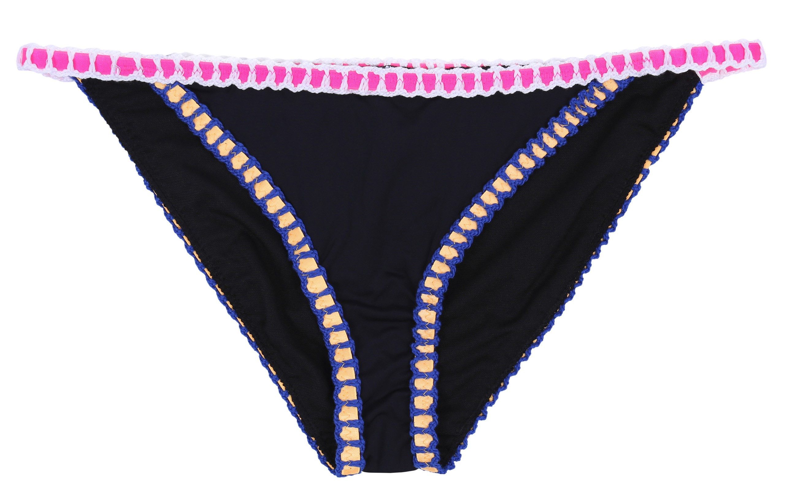 Schöne, schwarze Badehose mit buntem Gummiband und Baumwollenbesatz.