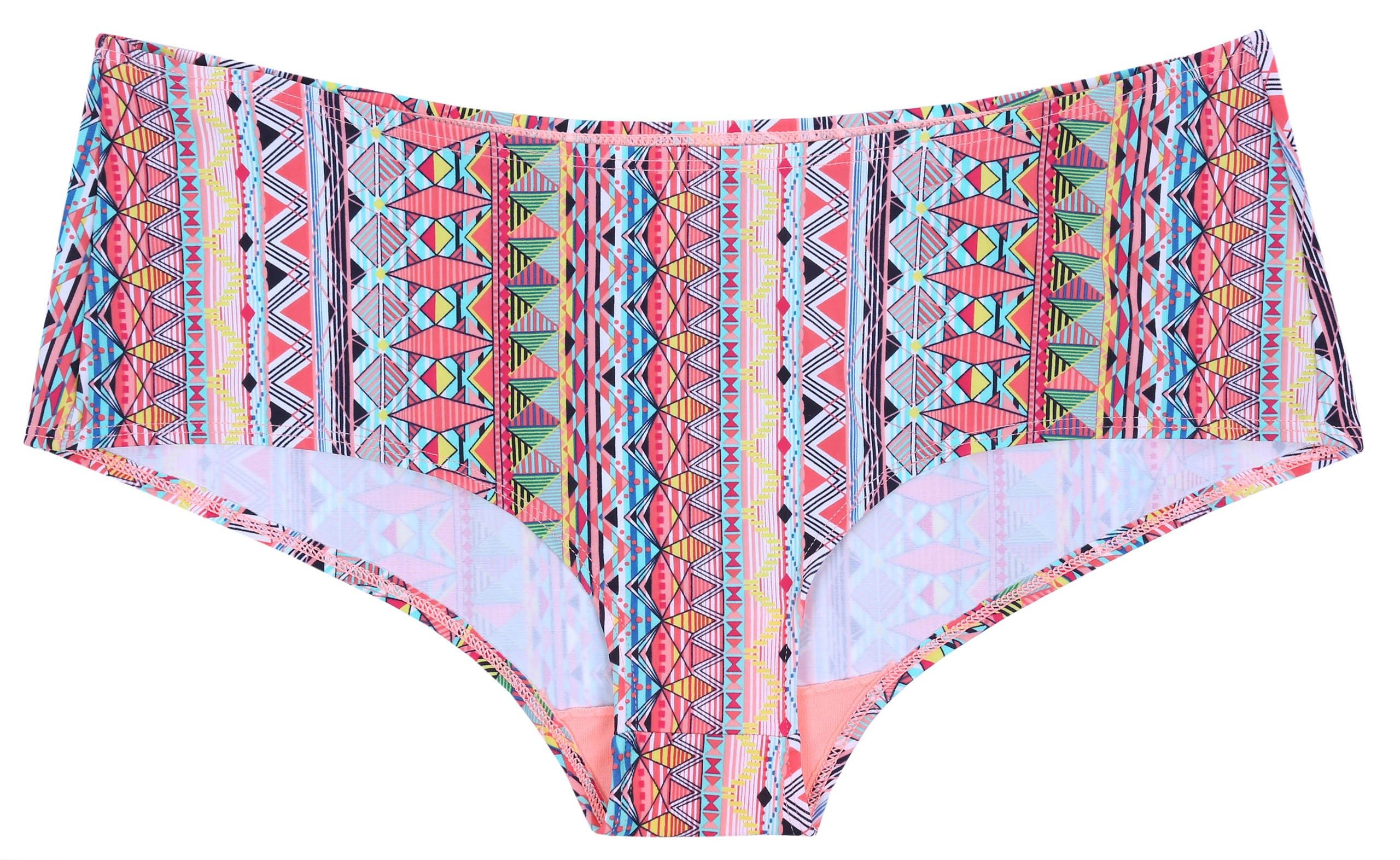 Schöne gemusterte Damen-Badehose, orangefarbene.