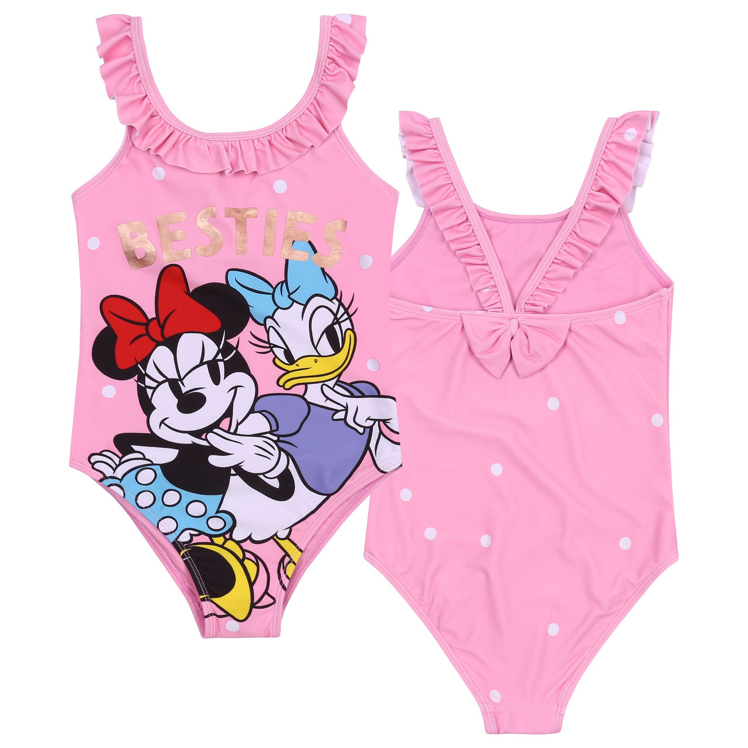 Vorne mit aufgedruckten, bunten Abbildungen von Minnie Maus und Daisy, hinten pink und weiß getupft.