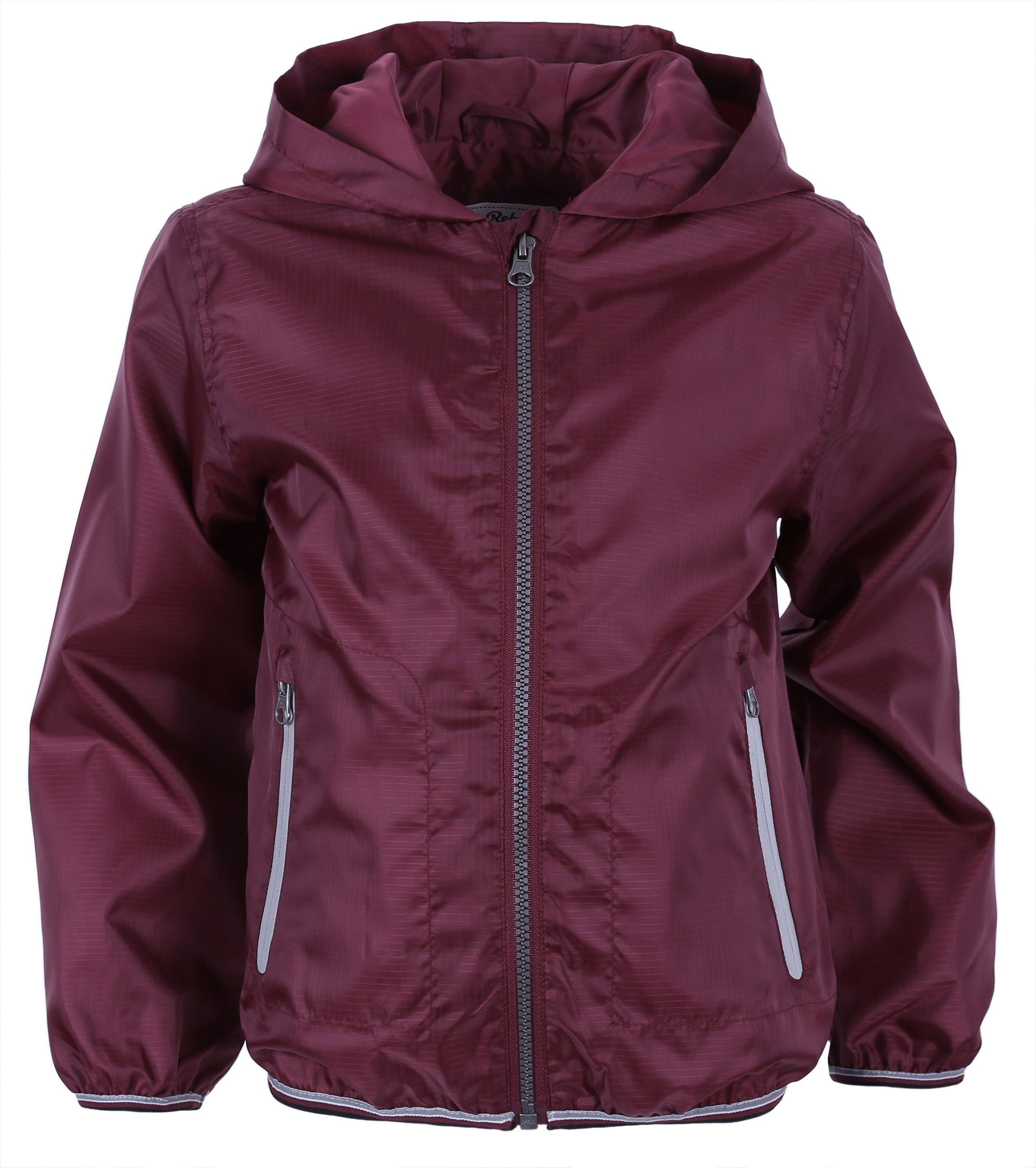 Dunkelrote Bomber-Jacke, mit Kapuze.