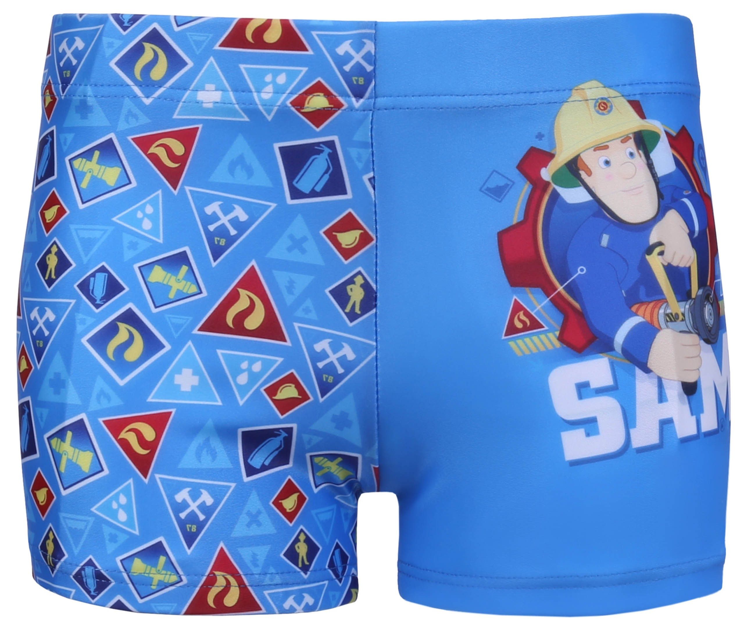 Blaue Badeshorts für Jungen mit Boxershorts-Schnitt und Motiv aus der Zeichentrickserie "Feuerwehrmann Sam".