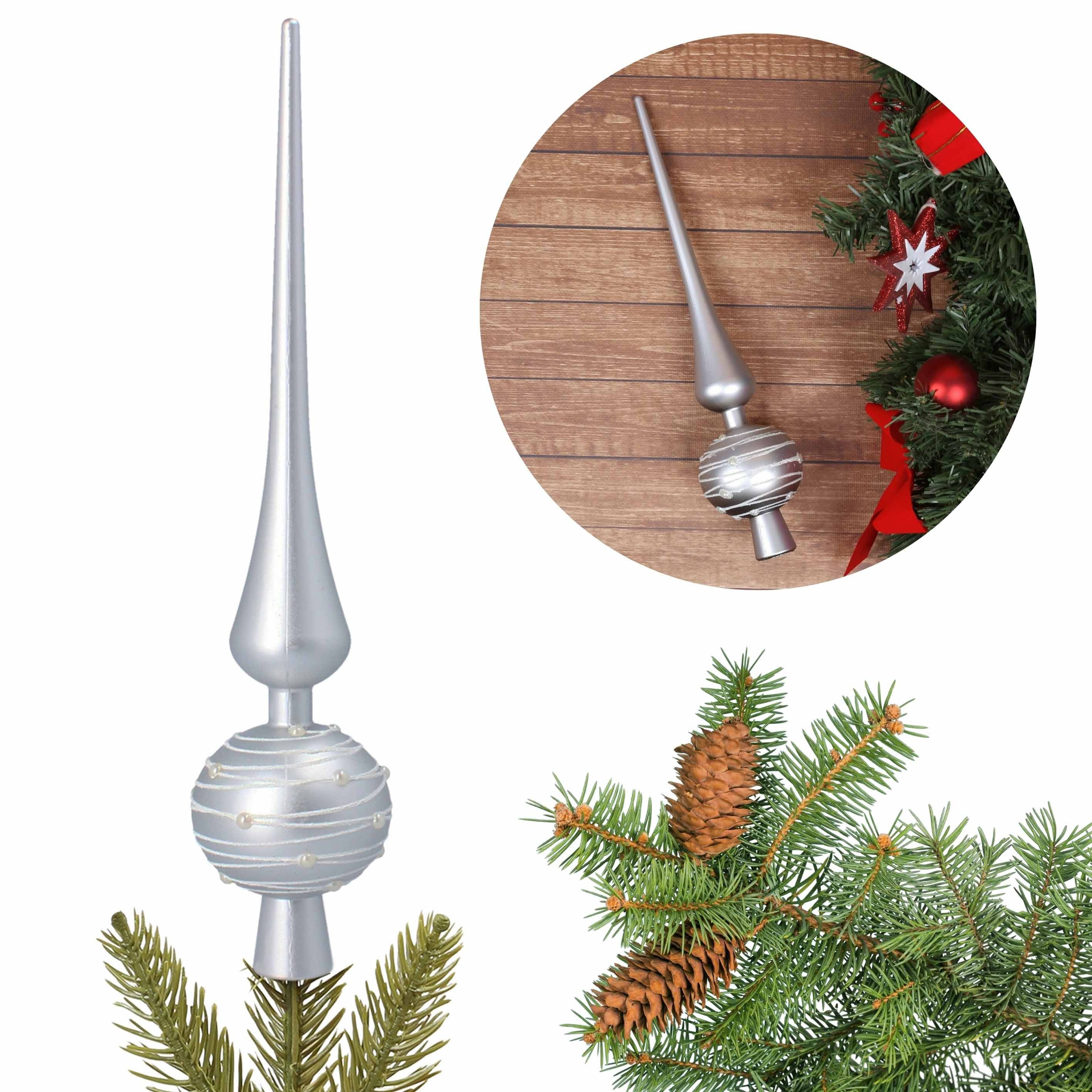 Unsere silberne Christbaumspitze ist der Inbegriff von festlichem Glamour und Eleganz.