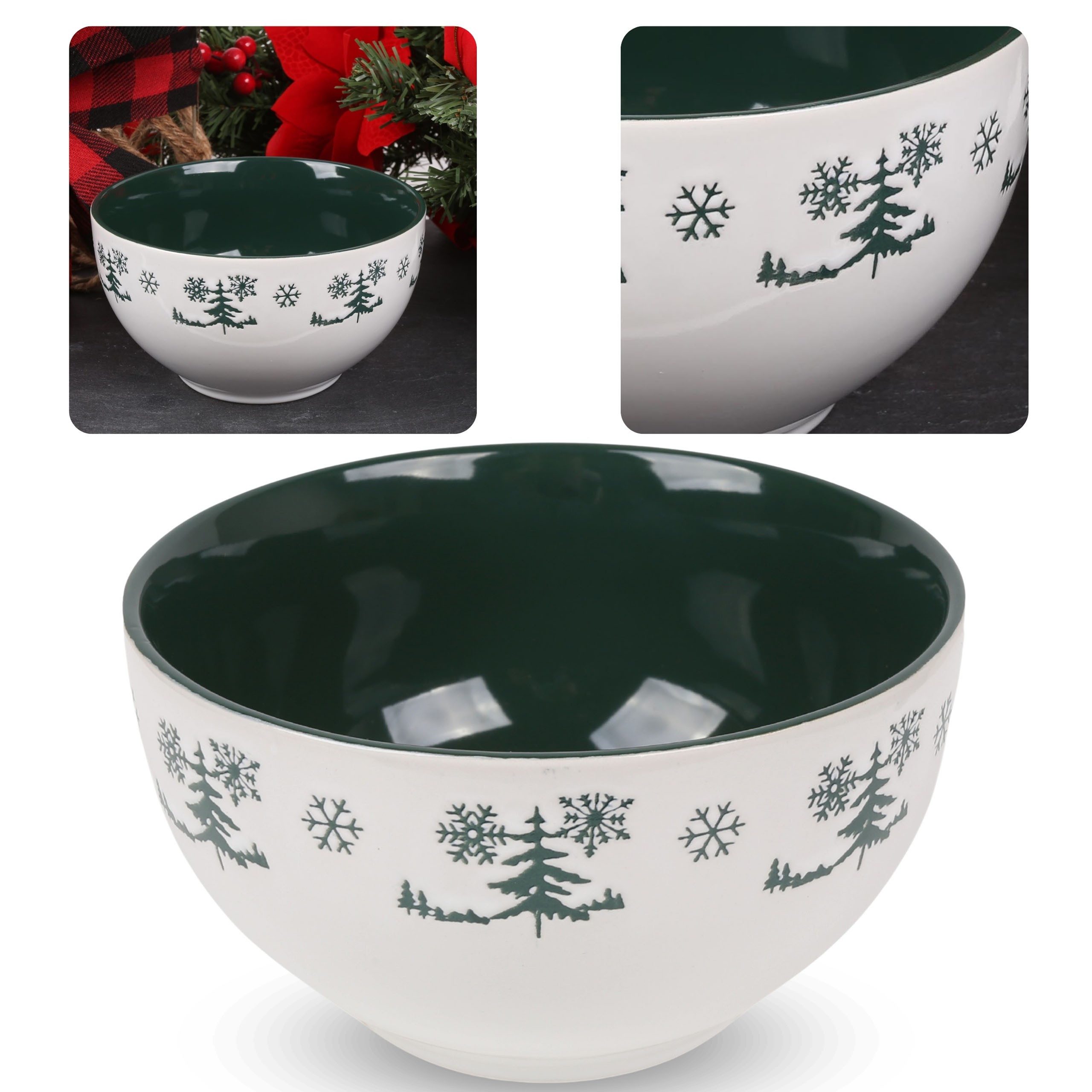 Diese weiße Keramikschale mit 550 ml Fassungsvermögen und einem dezenten Wintermotiv ist die perfekte Wahl für ein festliches Frühstück oder Abendessen.
