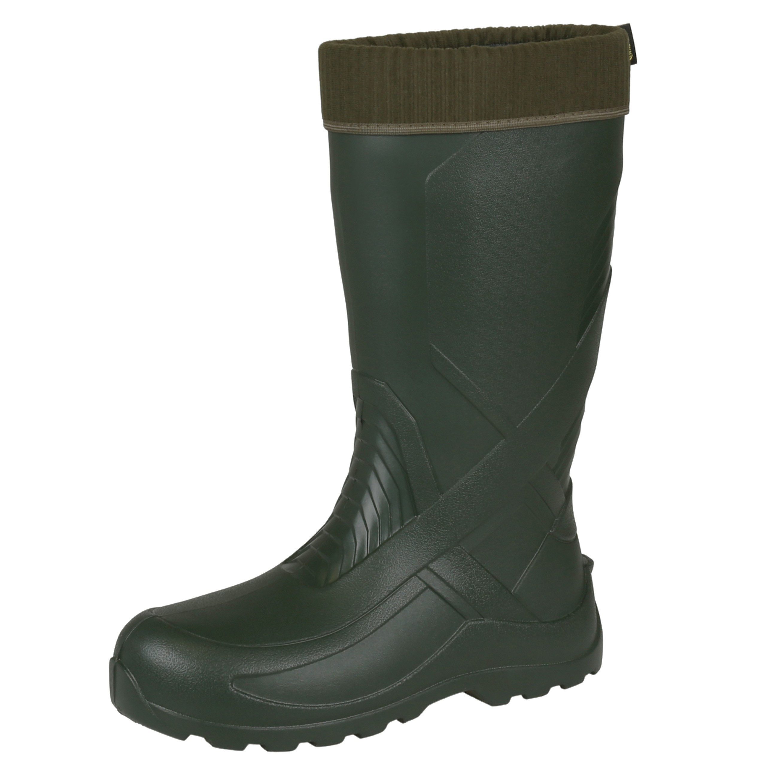 Dunkelgrüne Overknee-Gummistiefel für Herren aus glattem, einheitlich gefärbtem EVA-Schaum.