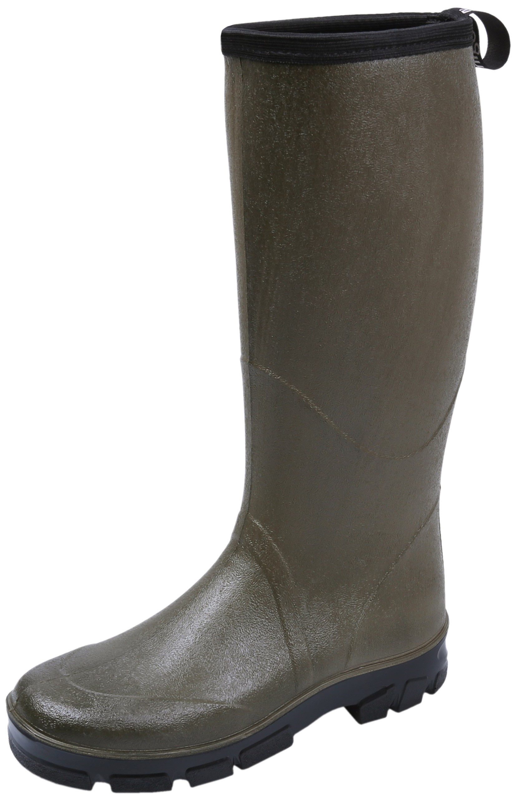 Grüne Gummistiefel für Herren aus geschäumtem Polyurethan-Kunststoff, der leichter als klassische Gummistiefel ist.
