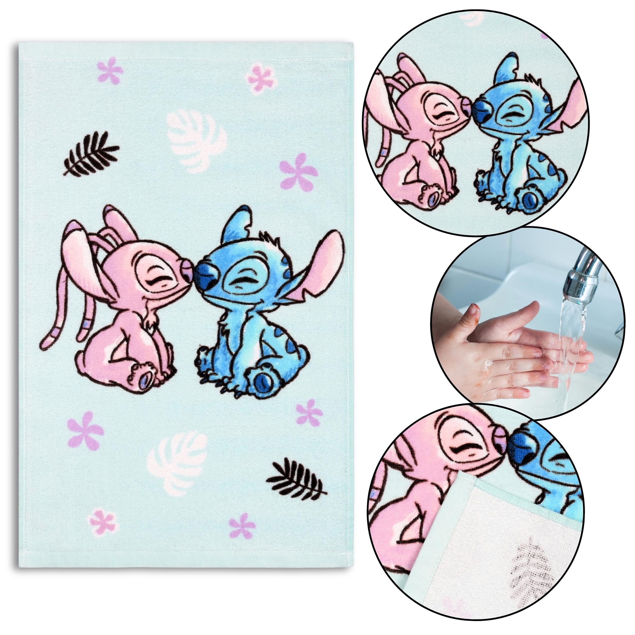 Das kleine Frotteehandtuch mit dem "Lilo & Stitch" Motiv ist ein süßes und praktisches Accessoire für Disney Fans.