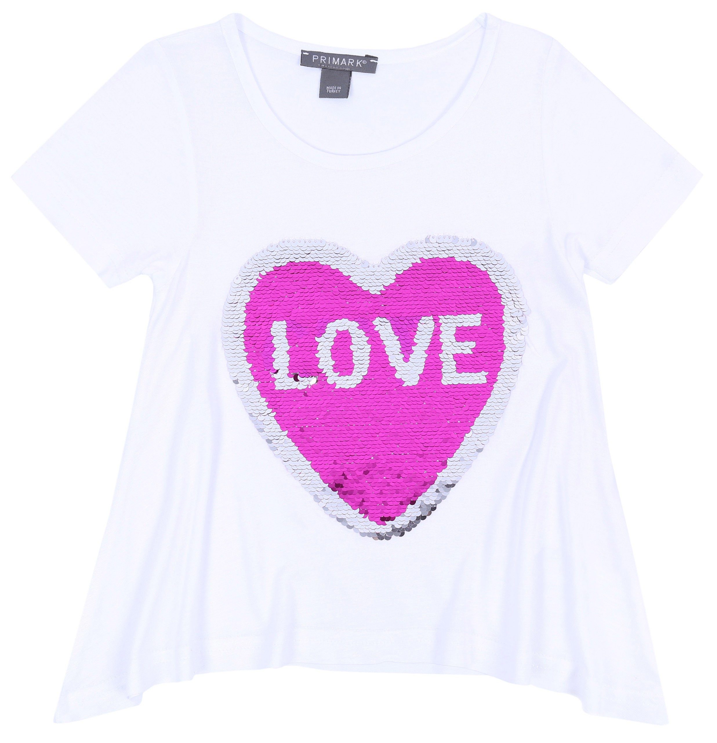 Ein paillettenbesetztes Herz mit einer wechselnden Love/Cute-Aufschrift auf der Vorderseite, je nach Positionierung.
