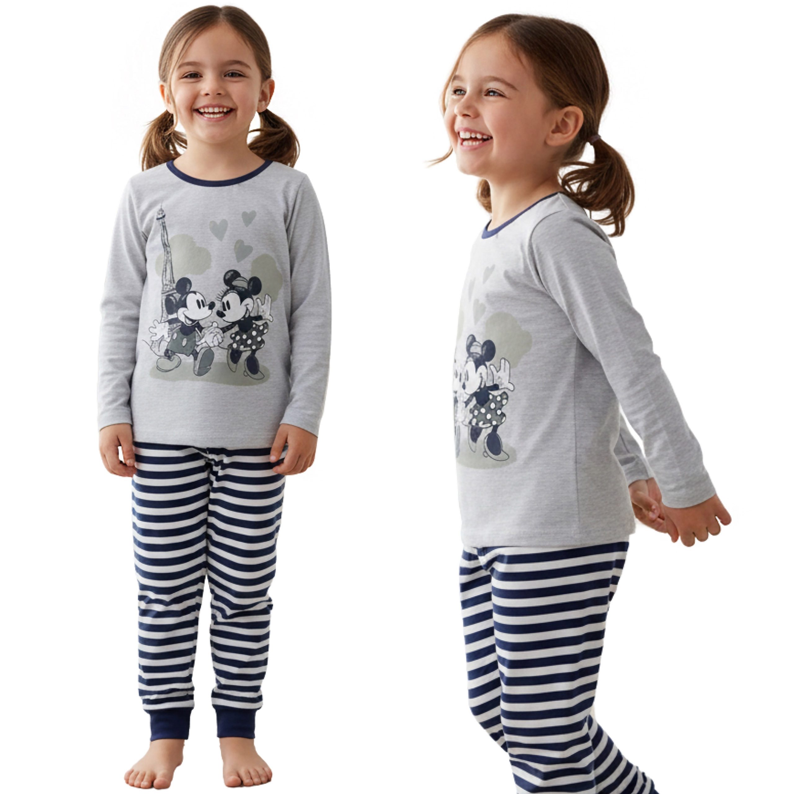 Die Mädchenpyjamas von Disney mit Minnie und Mickey sind ein bezauberndes Set, das eine märchenhafte Stimmung in den Alltag bringt. Das Langarmshirt zeigt die legendären Disney-Figuren vor dem Hintergrund des Eiffelturms. Die weiß-dunkelblauen gestreiften Hosen mit elastischem Bund runden das Outfit perfekt ab und verleihen ihm einen französischen Touch. Der bequeme Schnitt und das weiche Material garantieren Komfort beim Schlafen und Spielen zu Hause. Das ist die perfekte Wahl für Mädchen, die klassische Disney-Figuren lieben.