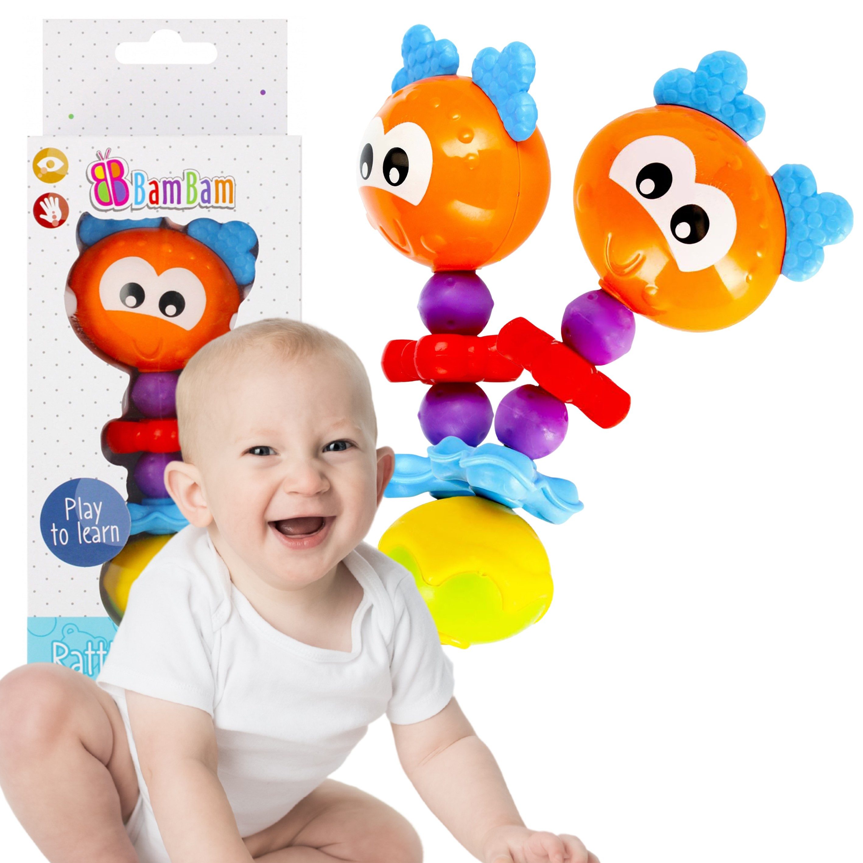 Die Wurmrassel schwingt beim Schütteln von einer Seite zur anderen und macht dabei aufregende Geräusche für Ihr Kind.
