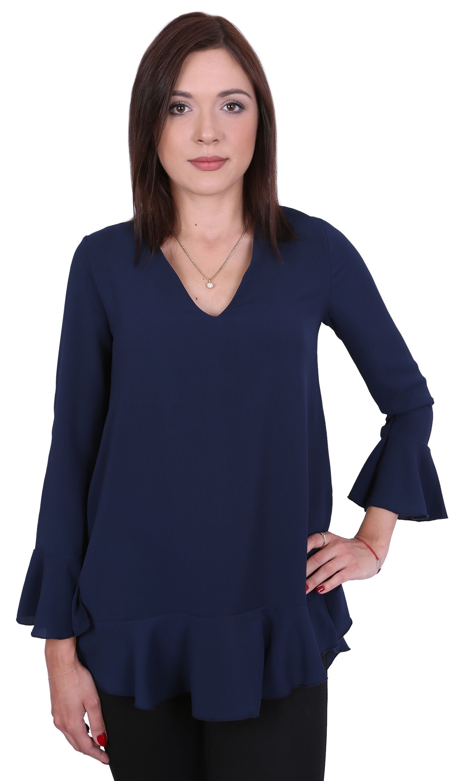Elegante, dunkelblaue Bluse, aus einem sich gut anfühlenden Stoff hergestellt.