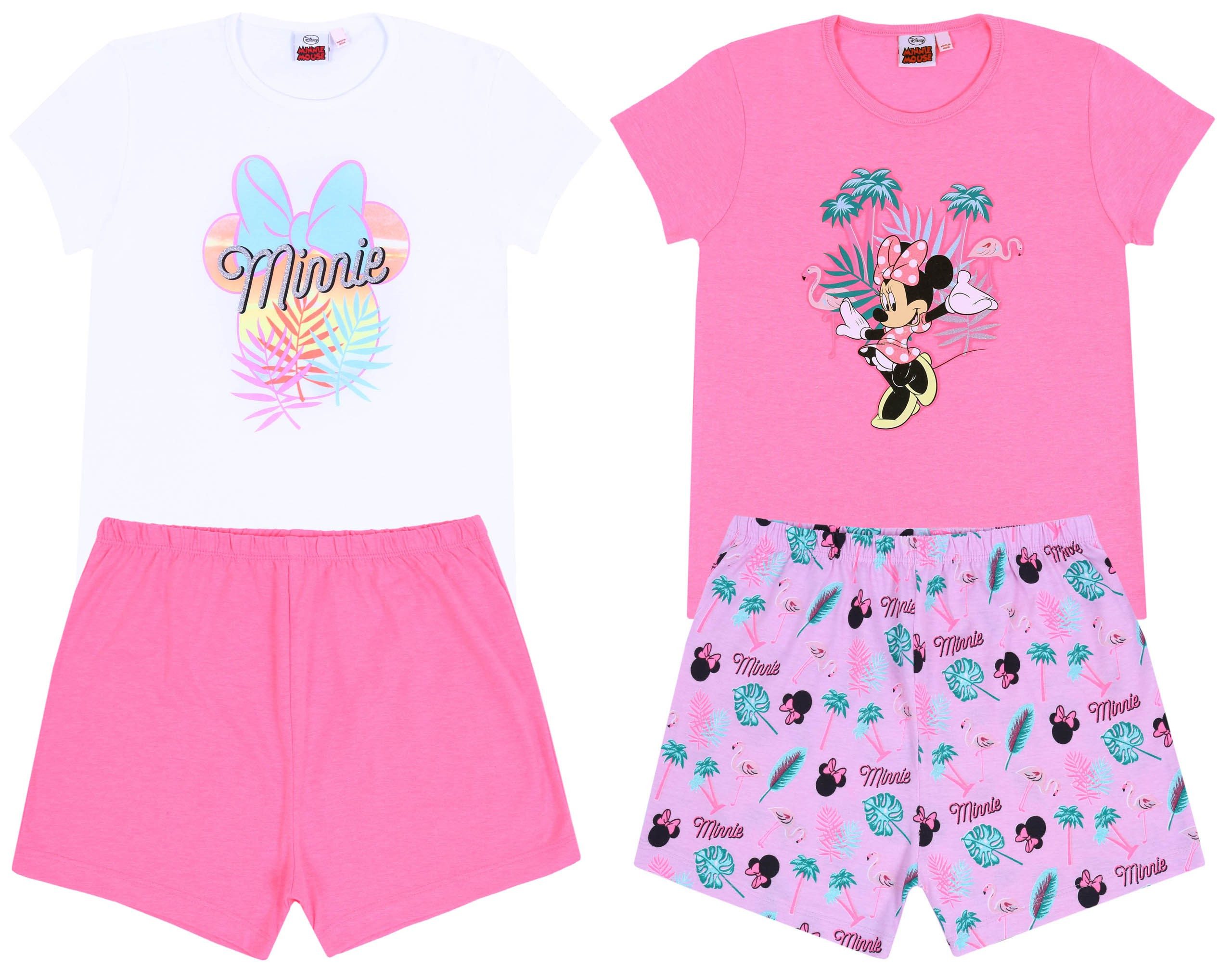 2 x Rosa -weißer, Schlafanzug mit kurzen Ärmeln und kurzer Hose für Mädchen.