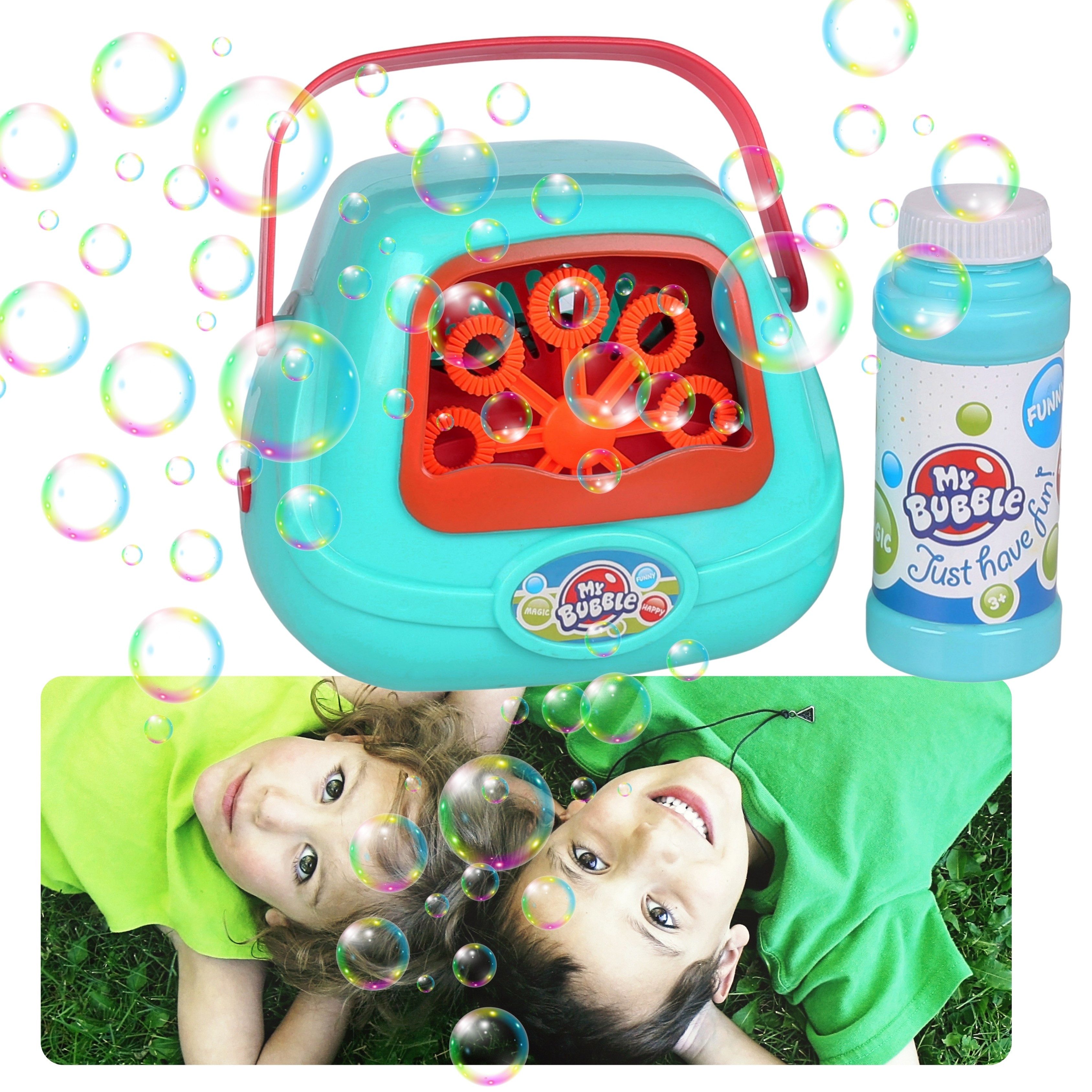 Das Set beinhaltet: Seifenblasenmaschine + Seifenblasenflüssigkeit