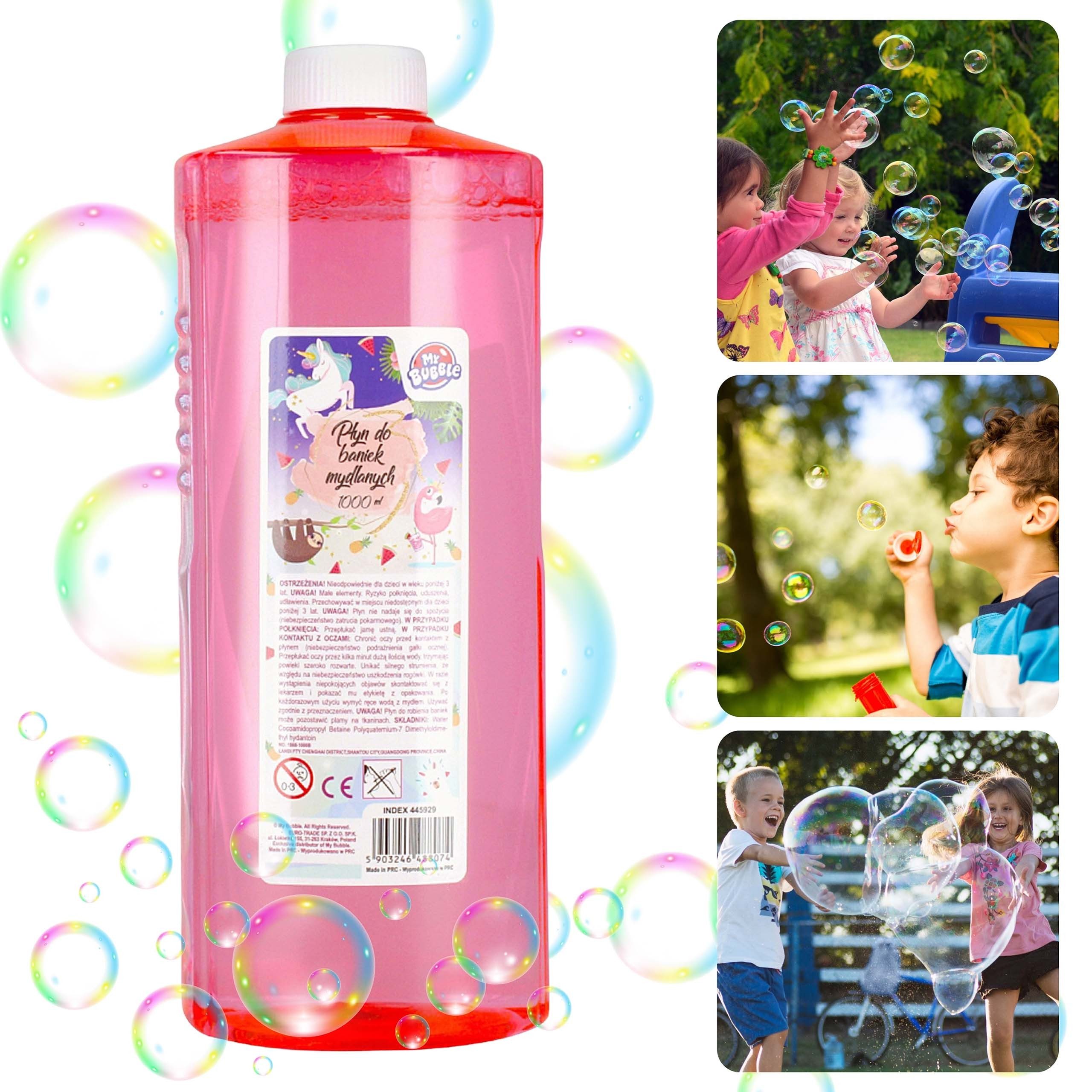 Flüssigkeit für Seifenblasen ist ideal zum Ergänzen von Pistolen oder anderen Maschinen und Geräten zum Herstellen von Seifenblasen.
