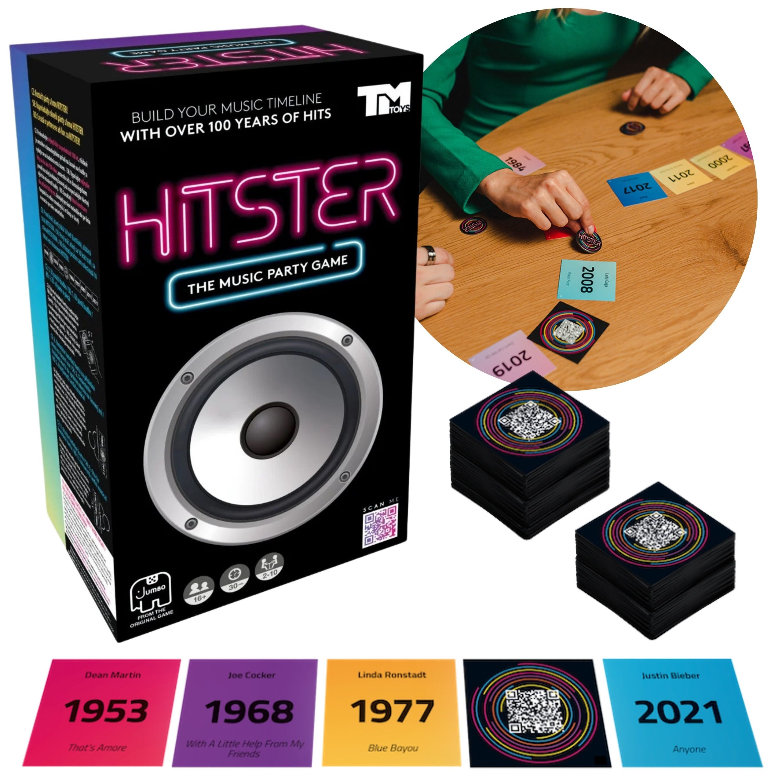 Hitster ist ein Party Musikspiel, das die Spieler auf eine Reise durch die größten Hits der letzten 100 Jahre mitnimmt.