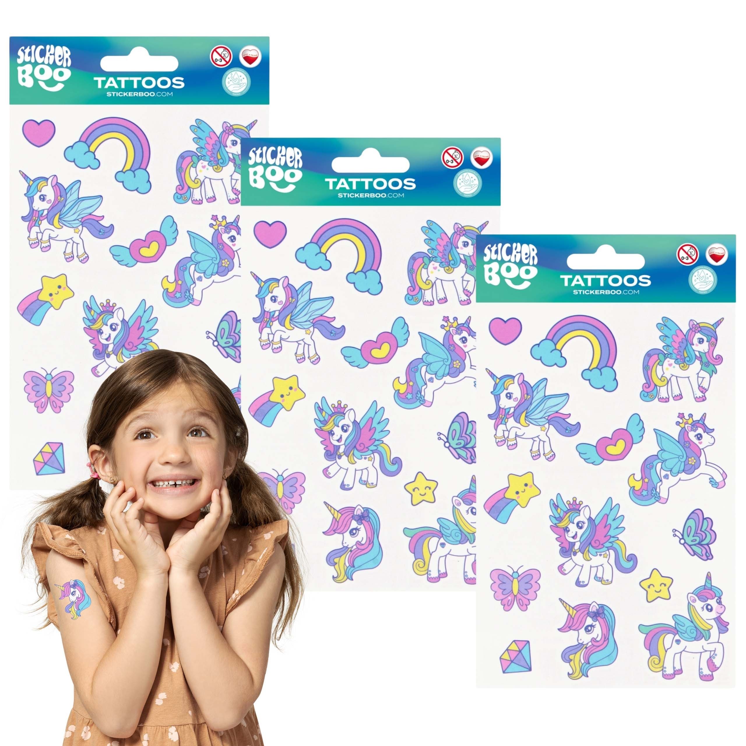 Sarcia.eu Stickerbuch Einhorn Kinder-Tattoo-Set, abwaschbare Kinder-Tattoos x3