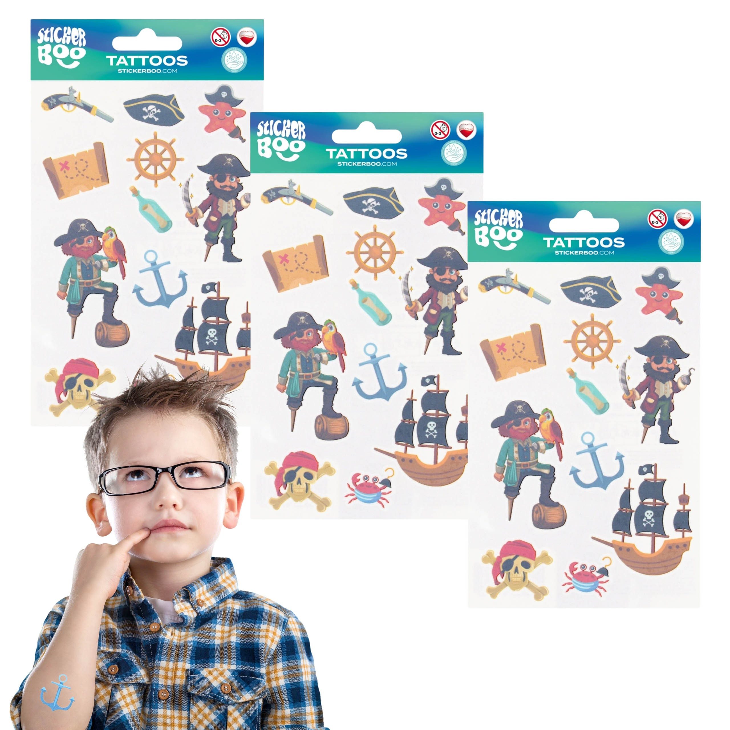 Sarcia.eu Stickerbuch Piraten Kinder-Tattoo-Set, abwaschbare Kinder-Tattoos x3