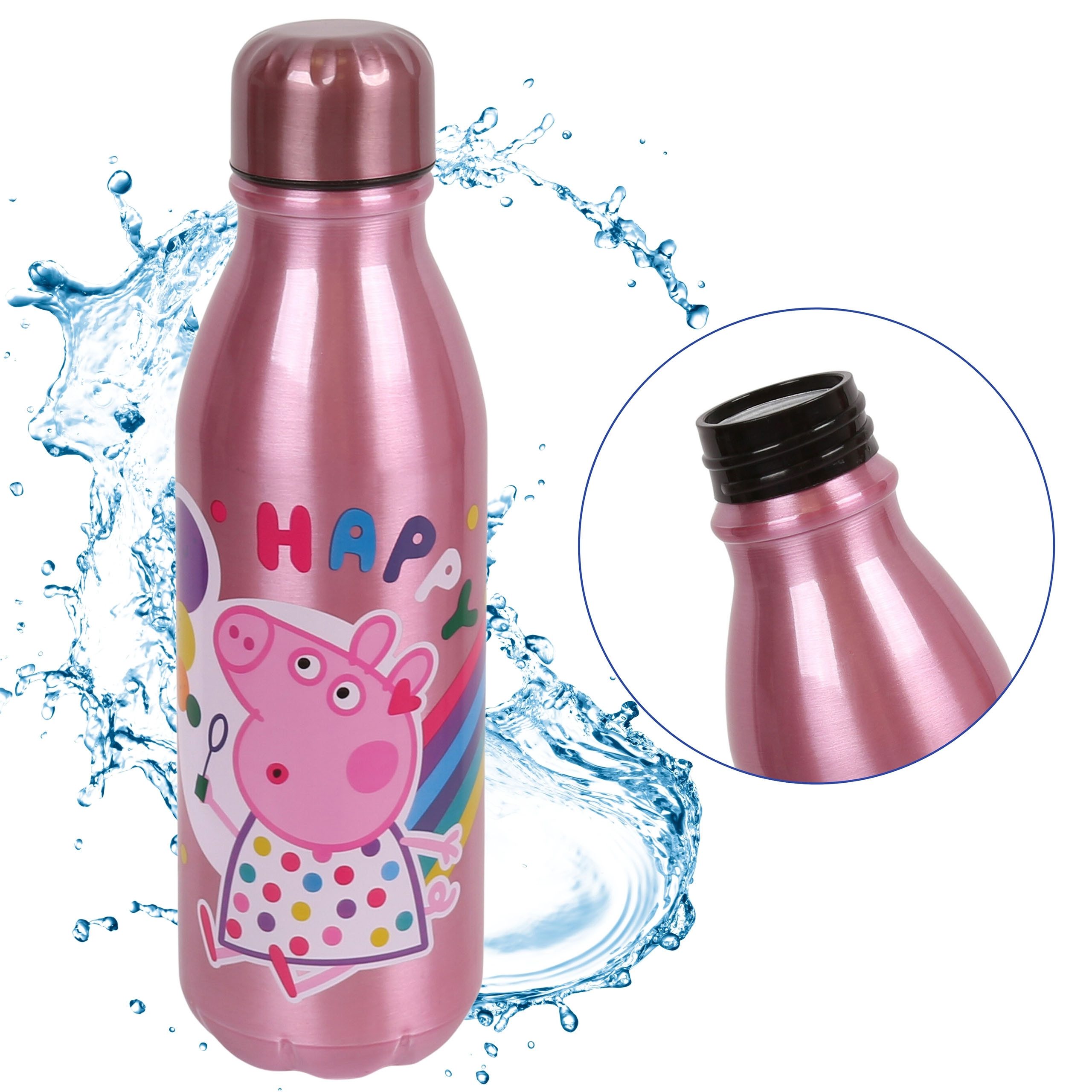 Diese rosafarbene Aluminiumflasche mit der niedlichen Peppa Wutz-Grafik ist die perfekte Wahl für jeden Fan der Abenteuer des Schweins.