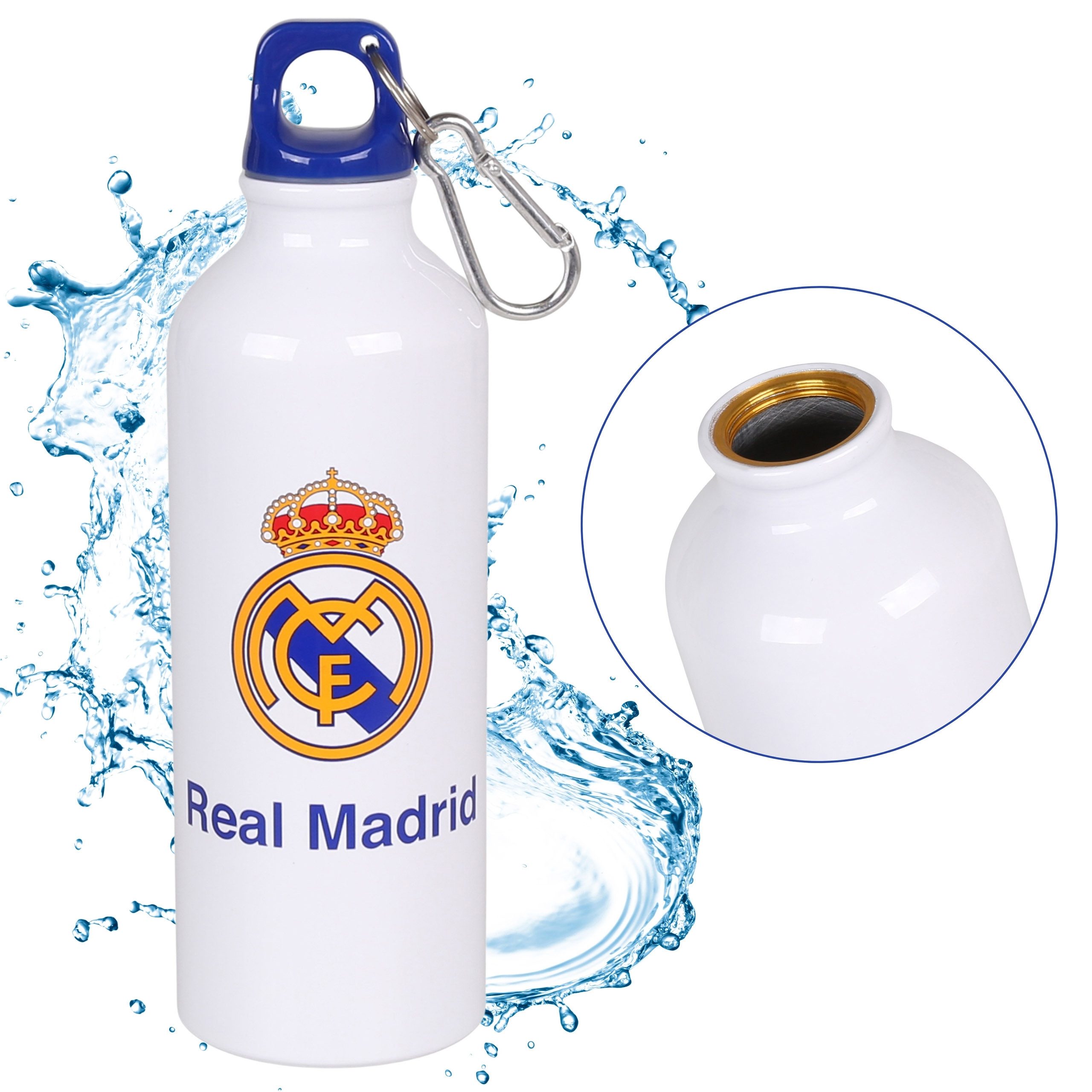 Die Real Madrid Aluminiumflasche ist das perfekte Gadget für echte Fans dieses berühmten Fußballvereins.