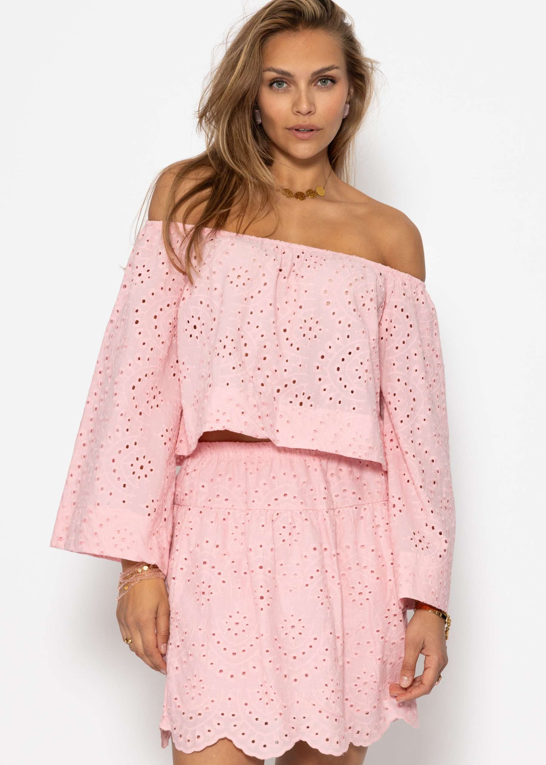DESIGN: Der Rock begeistert mit femininer Lochstickerei und welligem Saum, die dem Look eine verspielte, sommerliche Note verleihen und Leichtigkeit ausstrahlen