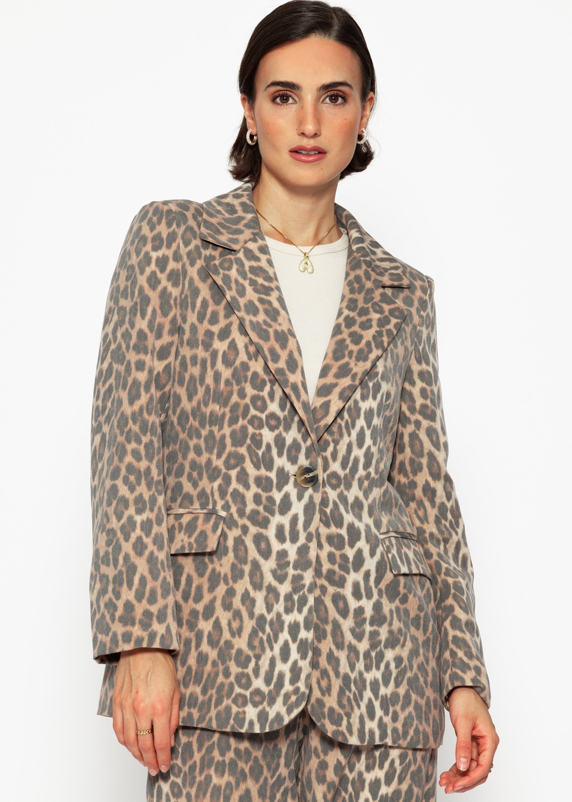 Besondere Merkmale | Blusenjacke mit Ein-Knopf-Verschluss in Leopardenmuster Braun |