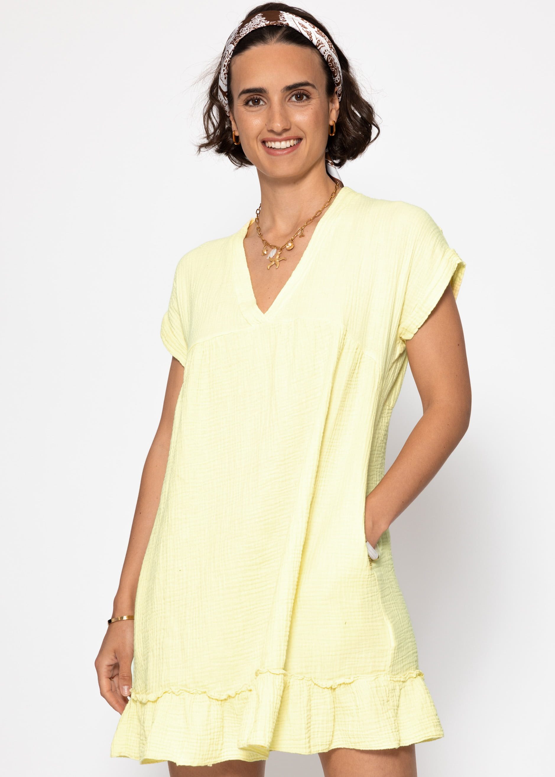 Besondere Merkmale | Leichtes Kleid kurzarm aus Baumwolle mit Volants Schwarz Gelb Pink |