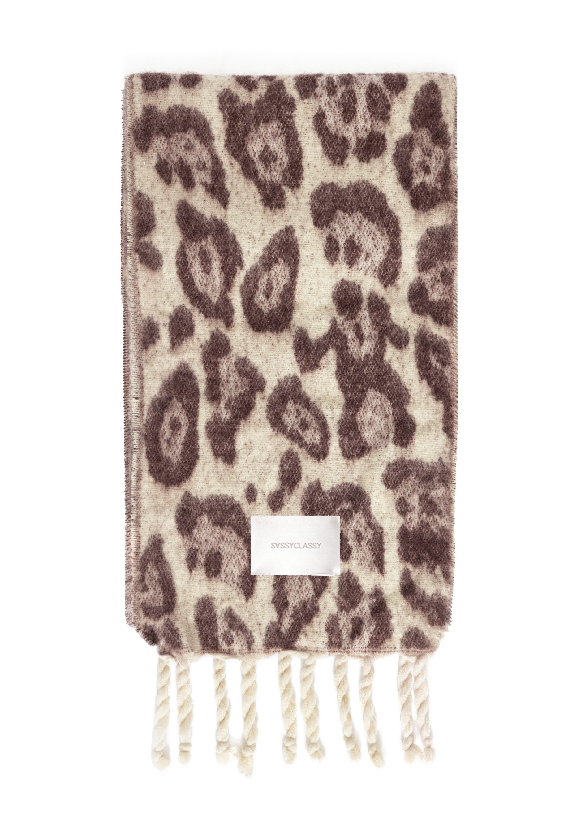 Besondere Merkmale | Warmer langer Schal im Leoprint Grau Offwhite Burgundy Braun Camel |