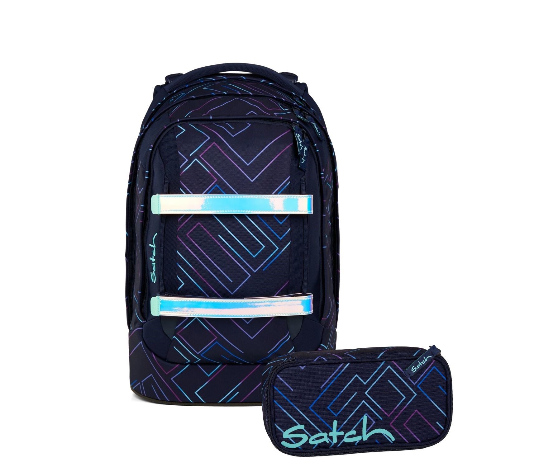 PACK - der Allrounder von Satch ist nicht nur ergonomisch, sondern auch sehr funktionell. Aufgeteilt ist der Schulrucksack in zwei Hauptfächer mit einem gepolsterten Laptop-Fach, ein Organizer-Fach und zwei dehnbare Seitentaschen. Dank des Your-Size-System lässt sich der Rucksack an alle Körpergrößen zwischen 1,40 - 1,80 m anpassen und wächst somit stetig mit. Durch den höhen- und längenverstellbaren Brustgurt werden die Schultergelenke entlastet und der Schulranzen hat einen stabilen Sitz am Rücken. Der breite Hüftgurt ist ebenfalls in der Длина verstellbar und verlagert das Gewicht gleichmäßig auf dem stabilen Becken des Kindes. Die Schultergurte und das Rückenpanel sind gepolstert sowie atmungsaktiv. Für noch mehr Sichtbarkeit und Sicherheit sorgen die Reflektoren, welche sich rundherum am Schulrucksack befinden. Ein robuster und standfester Boden sorgt dafür, dass der Ranzen auch den Belastungen des Schulalltags standhält. Die SWAPS an der Vorderseite sind austauschbar und durch einen Klettverschluss zu öffnen. Aus 20 PET-Flaschen (0,5 l) hergestellt.