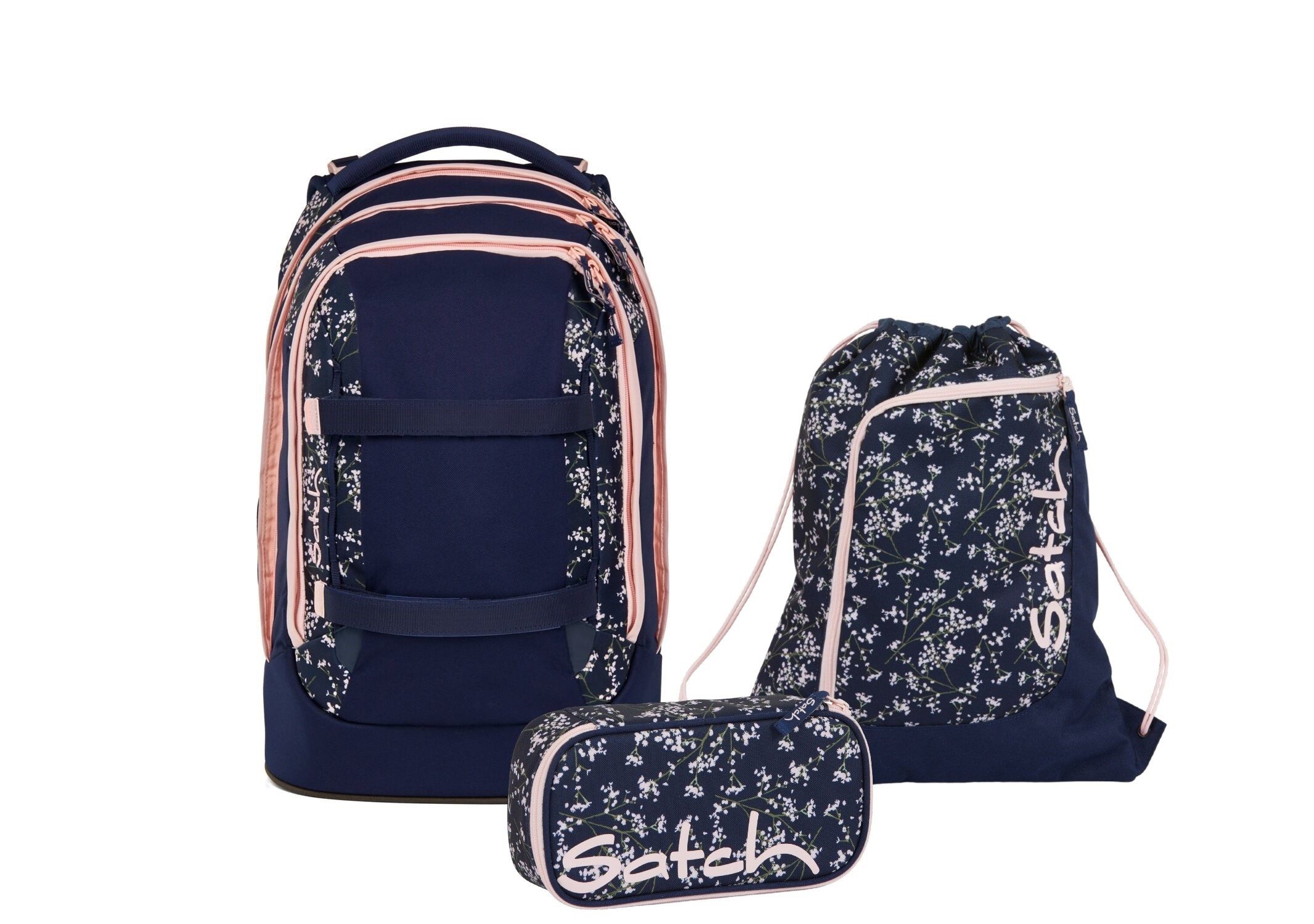 satch pack Schulrucksack Set 3tlg. Das Set besteht aus: •satch pack Schulrucksack - Der satch pack ist ein wahres Organisationstalent und bietet Ihnen die optimale Kombination innovativer Trekking Technologie mit den Besonderheiten eines Schulrucksacks. Der Schulrucksack ist durch sein cleveres Your-Size-System mit verstellbarer Rückenlänge optimal geeignet für eine Körpergröße von 1,40 m - 1,80 m. Ab der Kollektion 2025 besitzt der Rucksack das innovative 3D Soft-Mesh Rückensystem mit 3 Kammern und weicher Polsterung. Somit wird der Rücken entlastet und der Rucksack optimal an die Anatomie angepasst. Die atmungsaktive Rückenpolsterung mit innovativem Air-Flow Belüftungssystem und das Aluschienen-System bieten zusätzlichen Komfort und Stabilität. Der abnehmbare Hüftgurt garantiert die Verlagerung des Gewichts von den Schultern auf den stabilen Beckenbereich. Der Schulrucksack ist aufgrund seines Aufbaus mit einem höhenverstellbaren Brustgurt und der Entlastung des Rückens durch starke Beckenflossen am Hüftgurt, besonders ergonomisch. Ab der Kollektion 2025 wird der Beckengurt wieder über eine rückführende Bewegung angepasst. Die gepolsterten und verstellbaren Schultergurte und die Lastkontrollriemen gewährleisten eine ideale Lastverteilung auf den Schultern. Der Rucksack besitzt einen gepolsterten Tragegriff mit Soft-Touch-System ab der Kollektion 2025. Durch einen verstärkten Boden steht der Schulrucksack selbstständig. Das wasserabweisende Material bietet Schutz vor Feuchtigkeit und Schmutz. Zwei dehnbare Außenfächer bieten Platz für Trinkflasche und Regenschirm. Ab der Kollektion 2025 besitzt der pack breitere und höhere Seitentaschen und eine 3 Punkte Fixierung für den Sportbeutel (Sportbeutel nicht im Lieferumfang erhalten). Inklusive 2 austauschbare Frontswaps zur individuellen Gestaltung des Rucksacks. Ab der Kollektion 2025 mit der Möglichkeit 4 Swaps am Rucksack zu befestigen (zusätzliche Swaps sind nicht im Lieferumfang enthalten). Der satch pack ist ein wahres Raumwunder. Das Hauptfach besitzt ein gepolstertes Laptopfach, ein Tabletfach und ein Bücherfach. Das zweite Hauptfach ist die Vortasche und bietet zusätzlichen Stauraum für Etui, Brotdose und Co. Das Organizerfach besitzt ab der Kollektion 2025 ein größeres Taschenrechnerfach, ein Karabiner-Schlüsselband und zwei Deckelstützen, damit erhält das Cover mehr Stabilität und einen besseren Halt in geöffnetem Zustand. In den Netzfächern und Reißverschluss-Fächern des Organizerfachs werden persönliche Gegenstände wie Brille, MP3-Player, Smartphone, Taschenrechner, und Co. ideal verstaut. In dem Tabletfach sind die elektronischen Geräte sicher aufbewahrt. Eine Vielzahl reflektierender Elemente bieten zusätzliche Sicherheit im Straßenverkehr. •Schlamperbox - für Stifte, Schere, Kleber und die kleinen Dinge im Schulalltag, mit Stiftehalter, inkl. Geodreieck und Stundenplan, viel Platz für alle Schreibutensilien mit dem satch Zubehör. •Sportbeutel/Turnbeutel - ob Fußball, Handball oder Schwimmen, der Sportbeutel von satch ist ein treuer Begleiter, er passt auf alle satch Schulrucksäcke und ist einfach am Rucksack zu fixieren. Mit Reißverschluss-Frontfach. Technische Daten Rucksack: •Maße: 45 x 30 x 27 cm •Volumen: 30 Liter •Gewicht: 1.3 Kilogramm (ohne Zubehör und abnehmbare Elemente) •Все Maße und Gewichte sind ca.-Angaben •Bitte beachten Sie, dass die Artikel von der Darstellung abweichen können, da der Stoff laufend zugeschnitten wird. Dadurch erhält das Set ein einzigartiges Aussehen. •Displayeinstellungen können geringfügige Farbabweichungen verursachen. Bitte beachten Sie, dass das Hauptbild dem Motiv entspricht und die farblich abweichenden Bilder der Veranschaulichung der Produkteigenschaften dienen. •Im Lieferumfang enthalten sind der Schulrucksack, 2 Swaps, die Schlamperbox und der Sportbeutel. Впередes abgebildetes Zubehör dient dem Zweck der Veranschaulichung. •Pflegehinweise - Nicht waschen, nicht bleichen, nicht im Trockner trocknen, nicht bügeln, nicht trockenreinigen. Впередe Produktdaten entnehmen Sie bitte der Herstellerinformation.