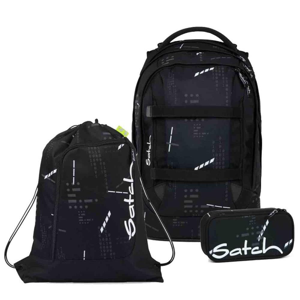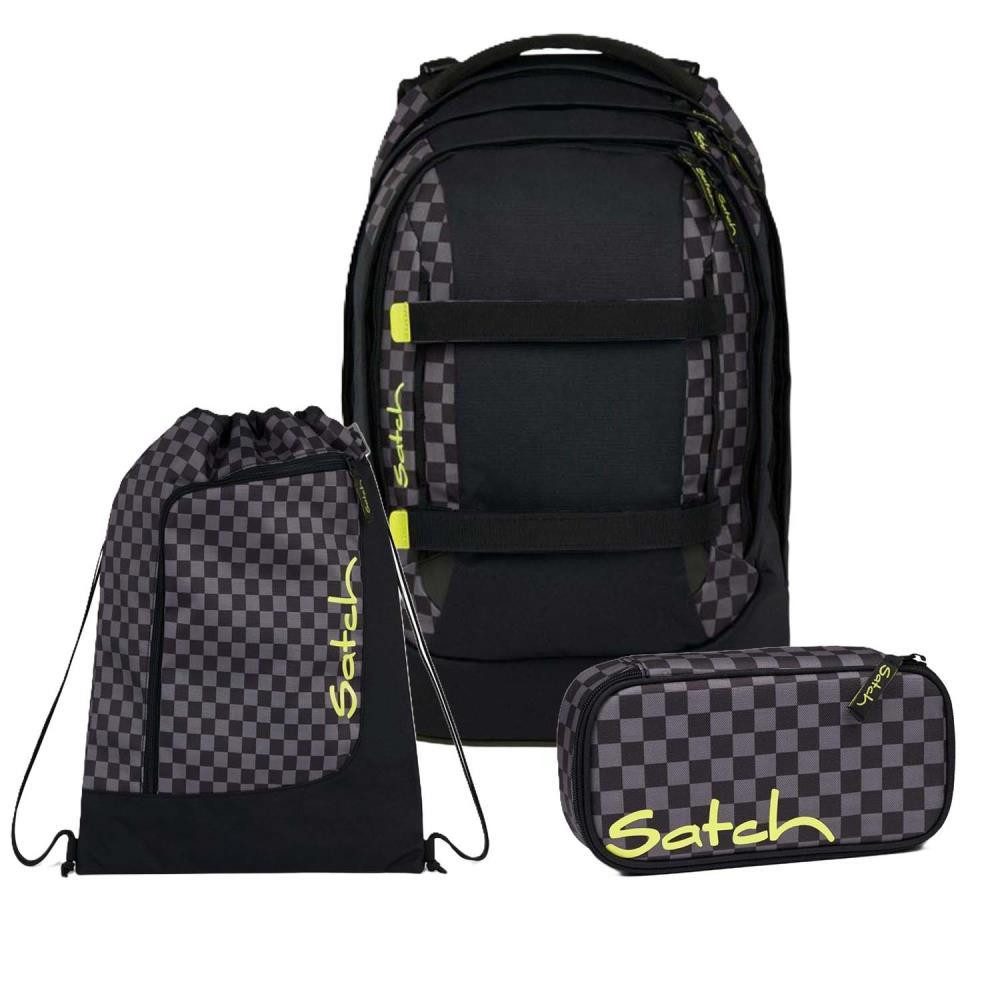 satch pack Schulrucksack Set 3tlg. Das Set besteht aus: •satch pack Schulrucksack - Der satch pack ist ein wahres Organisationstalent und bietet Ihnen die optimale Kombination innovativer Trekking Technologie mit den Besonderheiten eines Schulrucksacks. Der Schulrucksack ist durch sein cleveres Your-Size-System mit verstellbarer Rückenlänge optimal geeignet für eine Körpergröße von 1,40 m - 1,80 m. Ab der Kollektion 2025 besitzt der Rucksack das innovative 3D Soft-Mesh Rückensystem mit 3 Kammern und weicher Polsterung. Somit wird der Rücken entlastet und der Rucksack optimal an die Anatomie angepasst. Die atmungsaktive Rückenpolsterung mit innovativem Air-Flow Belüftungssystem und das Aluschienen-System bieten zusätzlichen Komfort und Stabilität. Der abnehmbare Hüftgurt garantiert die Verlagerung des Gewichts von den Schultern auf den stabilen Beckenbereich. Der Schulrucksack ist aufgrund seines Aufbaus mit einem höhenverstellbaren Brustgurt und der Entlastung des Rückens durch starke Beckenflossen am Hüftgurt, besonders ergonomisch. Ab der Kollektion 2025 wird der Beckengurt wieder über eine rückführende Bewegung angepasst. Die gepolsterten und verstellbaren Schultergurte und die Lastkontrollriemen gewährleisten eine ideale Lastverteilung auf den Schultern. Der Rucksack besitzt einen gepolsterten Tragegriff mit Soft-Touch-System ab der Kollektion 2025. Durch einen verstärkten Boden steht der Schulrucksack selbstständig. Das wasserabweisende Material bietet Schutz vor Feuchtigkeit und Schmutz. Zwei dehnbare Außenfächer bieten Platz für Trinkflasche und Regenschirm. Ab der Kollektion 2025 besitzt der pack breitere und höhere Seitentaschen und eine 3 Punkte Fixierung für den Sportbeutel (Sportbeutel nicht im Lieferumfang erhalten). Inklusive 2 austauschbare Frontswaps zur individuellen Gestaltung des Rucksacks. Ab der Kollektion 2025 mit der Möglichkeit 4 Swaps am Rucksack zu befestigen (zusätzliche Swaps sind nicht im Lieferumfang enthalten). Der satch pack ist ein wahres Raumwunder. Das Hauptfach besitzt ein gepolstertes Laptopfach, ein Tabletfach und ein Bücherfach. Das zweite Hauptfach ist die Vortasche und bietet zusätzlichen Stauraum für Etui, Brotdose und Co. Das Organizerfach besitzt ab der Kollektion 2025 ein größeres Taschenrechnerfach, ein Karabiner-Schlüsselband und zwei Deckelstützen, damit erhält das Cover mehr Stabilität und einen besseren Halt in geöffnetem Zustand. In den Netzfächern und Reißverschluss-Fächern des Organizerfachs werden persönliche Gegenstände wie Brille, MP3-Player, Smartphone, Taschenrechner, und Co. ideal verstaut. In dem Tabletfach sind die elektronischen Geräte sicher aufbewahrt. Eine Vielzahl reflektierender Elemente bieten zusätzliche Sicherheit im Straßenverkehr. •Schlamperbox - für Stifte, Schere, Kleber und die kleinen Dinge im Schulalltag, mit Stiftehalter, inkl. Geodreieck und Stundenplan, viel Platz für alle Schreibutensilien mit dem satch Zubehör. •Sportbeutel/Turnbeutel - ob Fußball, Handball oder Schwimmen, der Sportbeutel von satch ist ein treuer Begleiter, er passt auf alle satch Schulrucksäcke und ist einfach am Rucksack zu fixieren. Mit Reißverschluss-Frontfach. Technische Daten Rucksack: •Maße: 45 x 30 x 27 cm •Volumen: 30 Liter •Gewicht: 1.3 Kilogramm (ohne Zubehör und abnehmbare Elemente) •Все Maße und Gewichte sind ca.-Angaben •Bitte beachten Sie, dass die Artikel von der Darstellung abweichen können, da der Stoff laufend zugeschnitten wird. Dadurch erhält das Set ein einzigartiges Aussehen. •Displayeinstellungen können geringfügige Farbabweichungen verursachen. Bitte beachten Sie, dass das Hauptbild dem Motiv entspricht und die farblich abweichenden Bilder der Veranschaulichung der Produkteigenschaften dienen. •Im Lieferumfang enthalten sind der Schulrucksack, 2 Swaps, die Schlamperbox und der Sportbeutel. Впередes abgebildetes Zubehör dient dem Zweck der Veranschaulichung. •Pflegehinweise - Nicht waschen, nicht bleichen, nicht im Trockner trocknen, nicht bügeln, nicht trockenreinigen. Впередe Produktdaten entnehmen Sie bitte der Herstellerinformation.