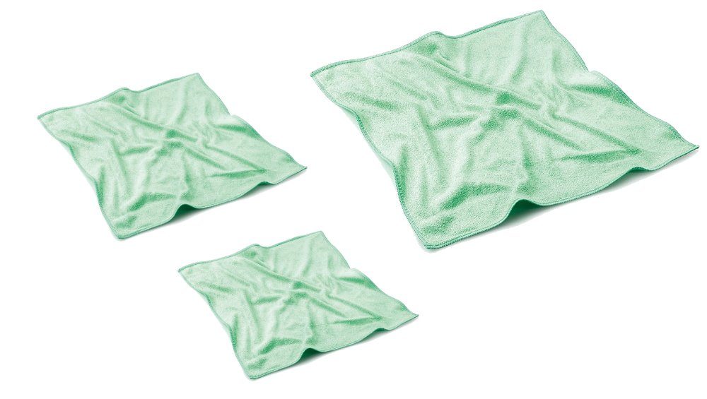 Materialzusammensetzung | 80 % Polyester / 20 % Polyamid, Reinigungstücher in der Farbe Grün |