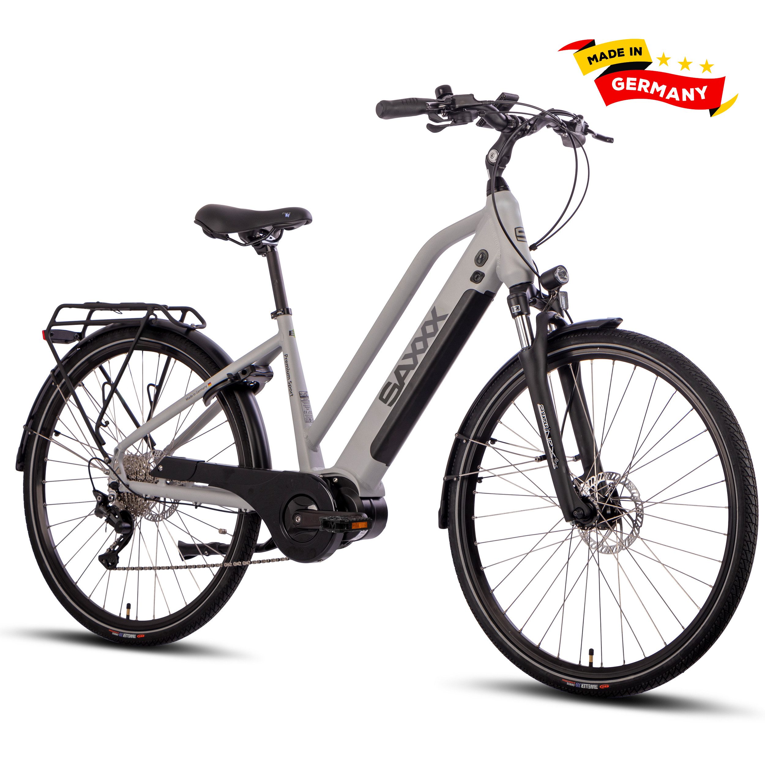 Dieses Trekking-E-Bike verfügt über einen stabilen Aluminiumrahmen in zwei Rahmengrößen (45 cm und 50 cm) und eignet sich für unterschiedliche Körpergrößen. Vor dem Versand ist das Fahrrad zu etwa 95 % vormontiert - die Endmontage ist unkompliziert.