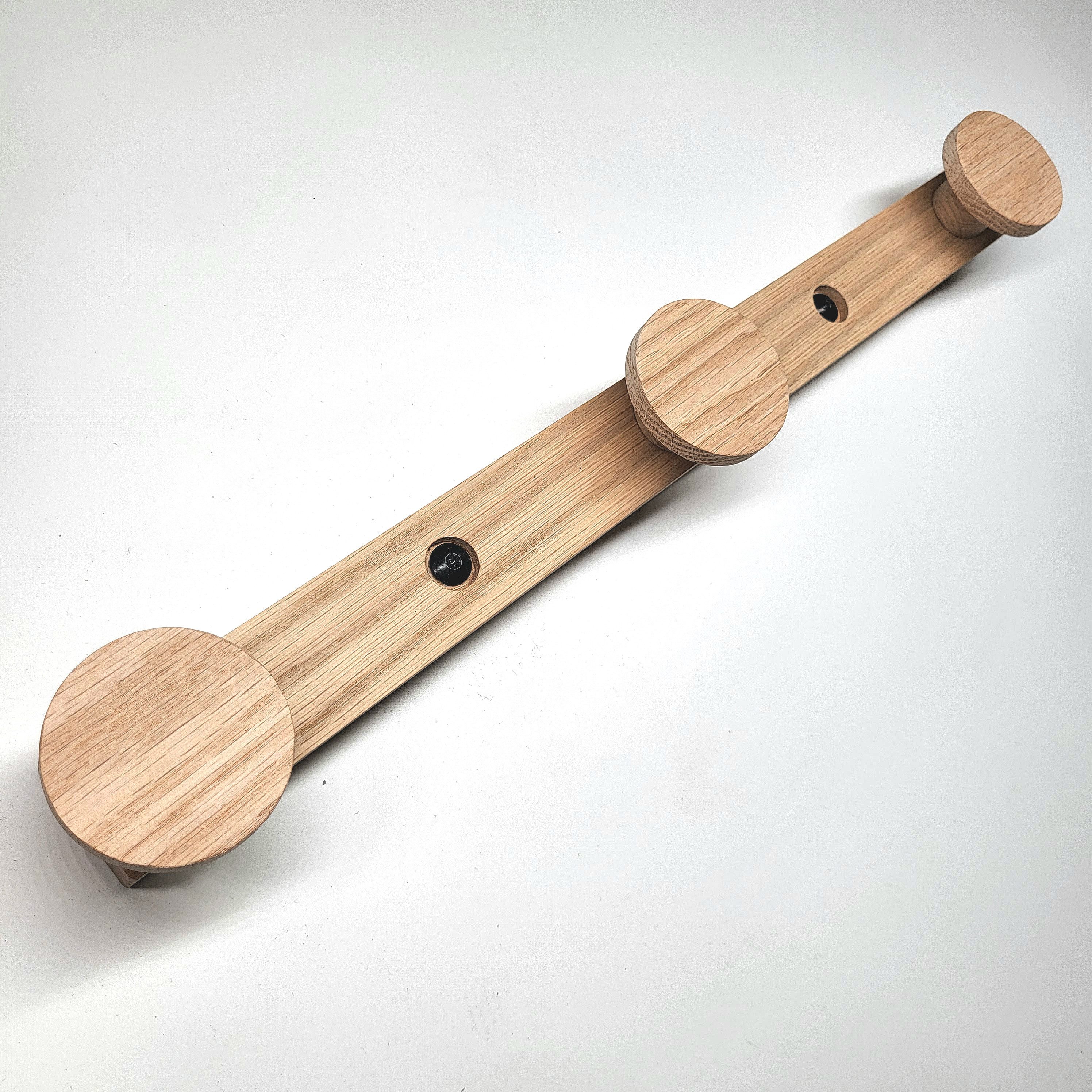 Entdecke unsere handgemachten Garderobenleisten von ScandiHooks und mache Dein Zuhause mit diesem Hingucker zu einem besonderen Ort! Egal ob in der Garderobe, im Flur, im Eingangsbereich, im Kinder-, Bade- oder Schlafzimmer diese Garderobenleiste lässt alle Kinderaugen funkeln. Die hochwertigen Garderobenleisten werden aus unbehandeltem und nachhaltigem Eichenholz gerfertigt und orientieren sich am skandinavischen Stil, welcher sich durch eine minimalistische, zeitlose, natürliche aber trotzdem kindgerechte Ästhetik auszeichnet. Das robuste Eichenmassivholz sorgt für eine lange Haltbarkeit. Um stets eine hohe Stabilität zu gewährleisten, wird die Leiste ganz einfach mit zwei schwarzen Design-Schrauben an der Wand fixiert. Die abgerundeten Kanten und die glatte Oberfläche sorgen für ein Gefühl von Wertigkeit, während die natürliche Maserung des Eichenholzes jede Garderobenleiste einzigartig macht. Die Motive lassen sich flexibel an jeder der drei Positionen anbringen. Durch die eingefräste Nut auf der Oberseite können dort Fotos, Postkarten, Poster, etc. eingesetzt werden. Hochwertiges Montagematerial mit Marken-Dübeln und Schrauben von Fischer sind im Lieferumfang ebenso enthalten wie eine zweisprachige Montageanleitung (Deutsch und Englisch). Der Versand erfolgt weltweit klimaneutral mit DHL GoGreen in einer plastikfreien und komplett papierbasierten Verpackung aus Recyclingmaterialien. Also, worauf wartest Du noch? Schau jetzt in unserem gesamten Shop vorbei und lass Dich von unserer großen Auswahl an Wandhaken, Möbelgriffen, Garderobenleisten und weiteren Produkten inspirieren. Wenn Du Fragen oder Sonderwünsche hast, schreibe uns gern eine Nachricht! Herzliche Grüße Dein ScandiHooks-Team