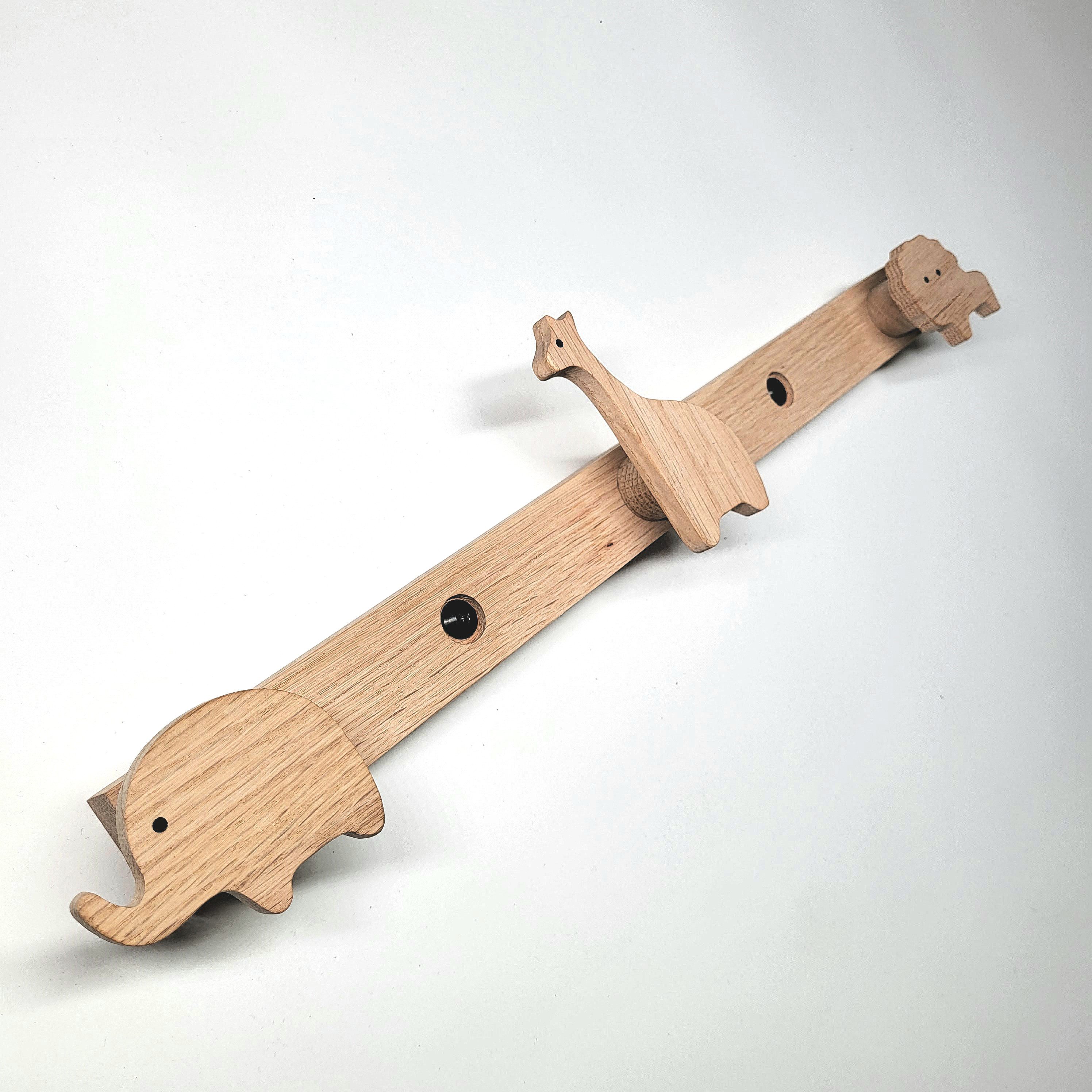 Entdecke unsere handgemachten Garderobenleisten von ScandiHooks und mache Dein Zuhause mit diesem Hingucker zu einem besonderen Ort! Egal ob in der Garderobe, im Flur, im Eingangsbereich, im Kinder-, Bade- oder Schlafzimmer diese Garderobenleiste lässt alle Kinderaugen funkeln. Die hochwertigen Garderobenleisten werden aus unbehandeltem und nachhaltigem Eichenholz gerfertigt und orientieren sich am skandinavischen Stil, welcher sich durch eine minimalistische, zeitlose, natürliche aber trotzdem kindgerechte Ästhetik auszeichnet. Das robuste Eichenmassivholz sorgt für eine lange Haltbarkeit. Um stets eine hohe Stabilität zu gewährleisten, wird die Leiste ganz einfach mit zwei schwarzen Design-Schrauben an der Wand fixiert. Die abgerundeten Kanten und die glatte Oberfläche sorgen für ein Gefühl von Wertigkeit, während die natürliche Maserung des Eichenholzes jede Garderobenleiste einzigartig macht. Die Motive lassen sich flexibel an jeder der drei Positionen anbringen. Durch die eingefräste Nut auf der Oberseite können dort Fotos, Postkarten, Poster, etc. eingesetzt werden. Hochwertiges Montagematerial mit Marken-Dübeln und Schrauben von Fischer sind im Lieferumfang ebenso enthalten wie eine zweisprachige Montageanleitung (Deutsch und Englisch). Der Versand erfolgt weltweit klimaneutral mit DHL GoGreen in einer plastikfreien und komplett papierbasierten Verpackung aus Recyclingmaterialien. Also, worauf wartest Du noch? Schau jetzt in unserem gesamten Shop vorbei und lass Dich von unserer großen Auswahl an Wandhaken, Möbelgriffen, Garderobenleisten und weiteren Produkten inspirieren. Wenn Du Fragen oder Sonderwünsche hast, schreibe uns gern eine Nachricht! Herzliche Grüße Dein ScandiHooks-Team