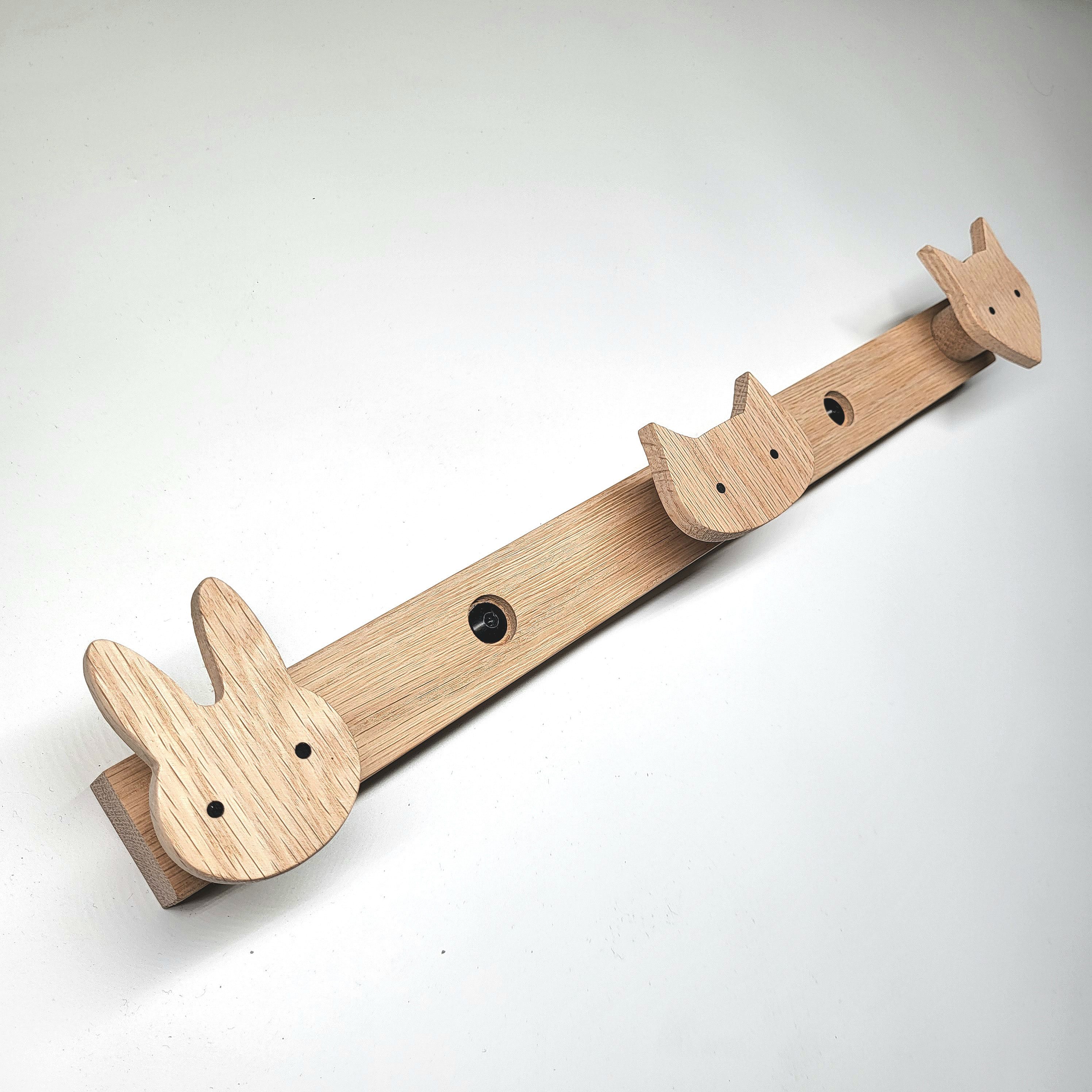 Entdecke unsere handgemachten Garderobenleisten von ScandiHooks und mache Dein Zuhause mit diesem Hingucker zu einem besonderen Ort! Egal ob in der Garderobe, im Flur, im Eingangsbereich, im Kinder-, Bade- oder Schlafzimmer diese Garderobenleiste lässt alle Kinderaugen funkeln. Die hochwertigen Garderobenleisten werden aus unbehandeltem und nachhaltigem Eichenholz gerfertigt und orientieren sich am skandinavischen Stil, welcher sich durch eine minimalistische, zeitlose, natürliche aber trotzdem kindgerechte Ästhetik auszeichnet. Das robuste Eichenmassivholz sorgt für eine lange Haltbarkeit. Um stets eine hohe Stabilität zu gewährleisten, wird die Leiste ganz einfach mit zwei schwarzen Design-Schrauben an der Wand fixiert. Die abgerundeten Kanten und die glatte Oberfläche sorgen für ein Gefühl von Wertigkeit, während die natürliche Maserung des Eichenholzes jede Garderobenleiste einzigartig macht. Die Motive lassen sich flexibel an jeder der drei Positionen anbringen. Durch die eingefräste Nut auf der Oberseite können dort Fotos, Postkarten, Poster, etc. eingesetzt werden. Hochwertiges Montagematerial mit Marken-Dübeln und Schrauben von Fischer sind im Lieferumfang ebenso enthalten wie eine zweisprachige Montageanleitung (Deutsch und Englisch). Der Versand erfolgt weltweit klimaneutral mit DHL GoGreen in einer plastikfreien und komplett papierbasierten Verpackung aus Recyclingmaterialien. Also, worauf wartest Du noch? Schau jetzt in unserem gesamten Shop vorbei und lass Dich von unserer großen Auswahl an Wandhaken, Möbelgriffen, Garderobenleisten und weiteren Produkten inspirieren. Wenn Du Fragen oder Sonderwünsche hast, schreibe uns gern eine Nachricht! Herzliche Grüße Dein ScandiHooks-Team