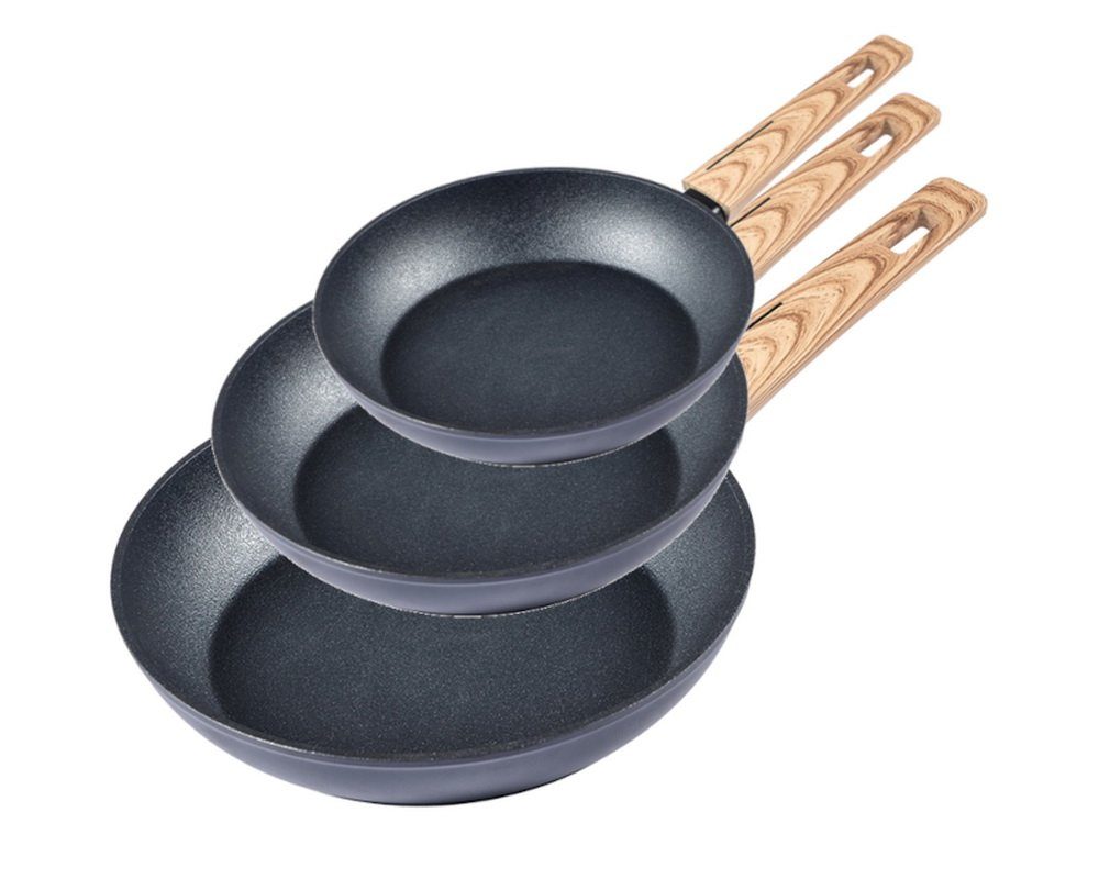 Eine raue Antihaftbeschichtung und ein hitzeabweisender Soft-Griff sind weitere Vorteile. Das moderne Design in Schwarzmatt lackiert und mit Griff in Holz-Optik ist ein Augenschmaus in Ihrer Küche.