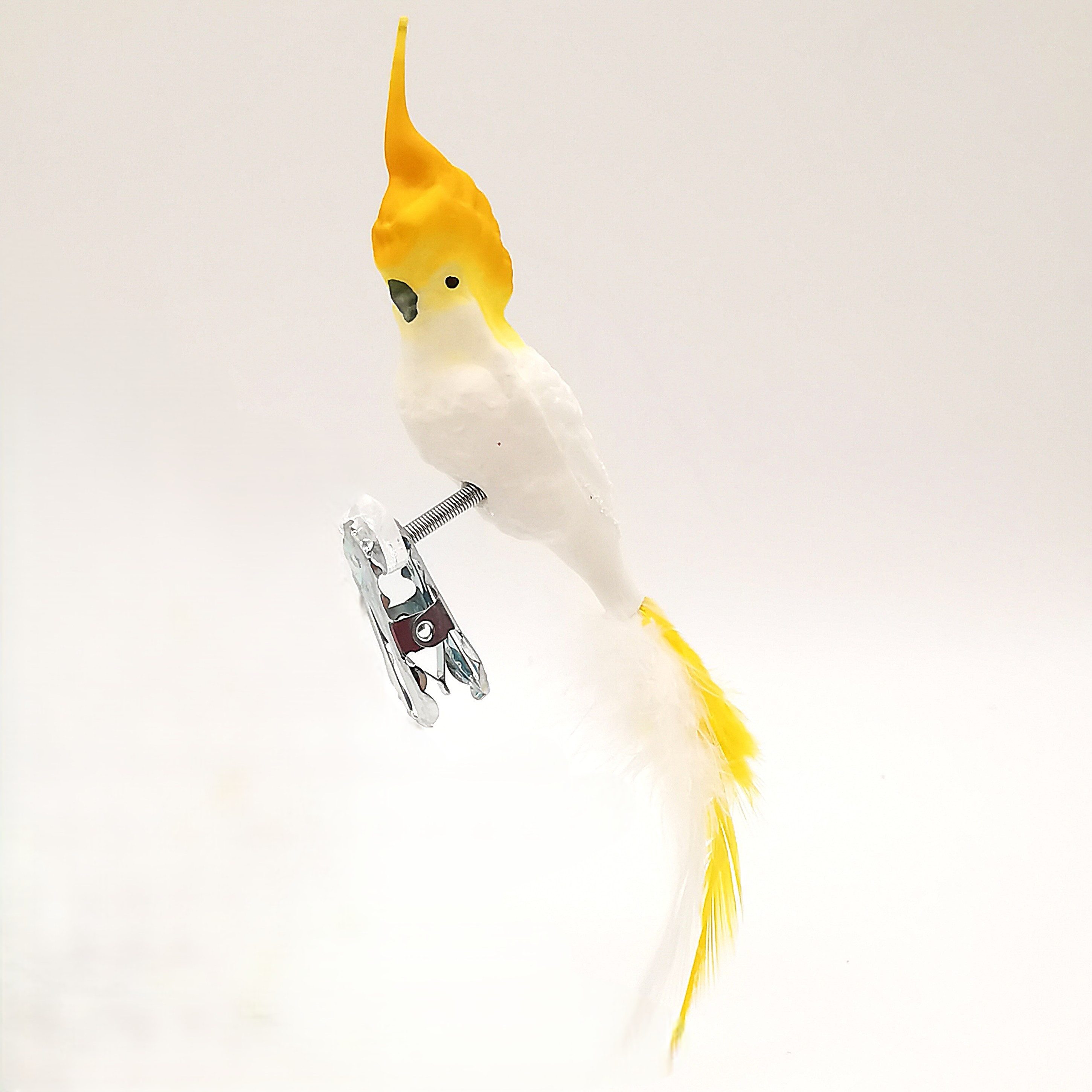 zauberhaftes Federvieh Ob Kleiber, Grünspecht oder Star – das ganze Jahr ist‘s wunderbar. Jeder dieser bezaubernden Vögel, steht einzig gleich für die fortlebende Tradition der in Manufaktur gefertigten Wesen aus Glas. Der kleine Kakadu auf Clip ist Lauschaer Glaskunst zum Schönmachen für ihr Zuhause - an jedem Tag. Thüringer Glasschmuck handgemacht Kakadu, Glaskörper 9cm/ mit Federn 16cm, auf Metallclip In der detailreichen Ausführung dieses Eisvogels liegt das Einzigartige von Lauschaer Glaskunst, die mundgeblasen und handbemalt in Thüringen hergestellt wird. Zeichen kunstvoller Handarbeit ist jedes Vogel-Ornament verschieden und keines gleich einem anderen, stets ein Unikat, geschützt von der künstlerischen Freiheit des Glasbläsers und der Malerinnen.