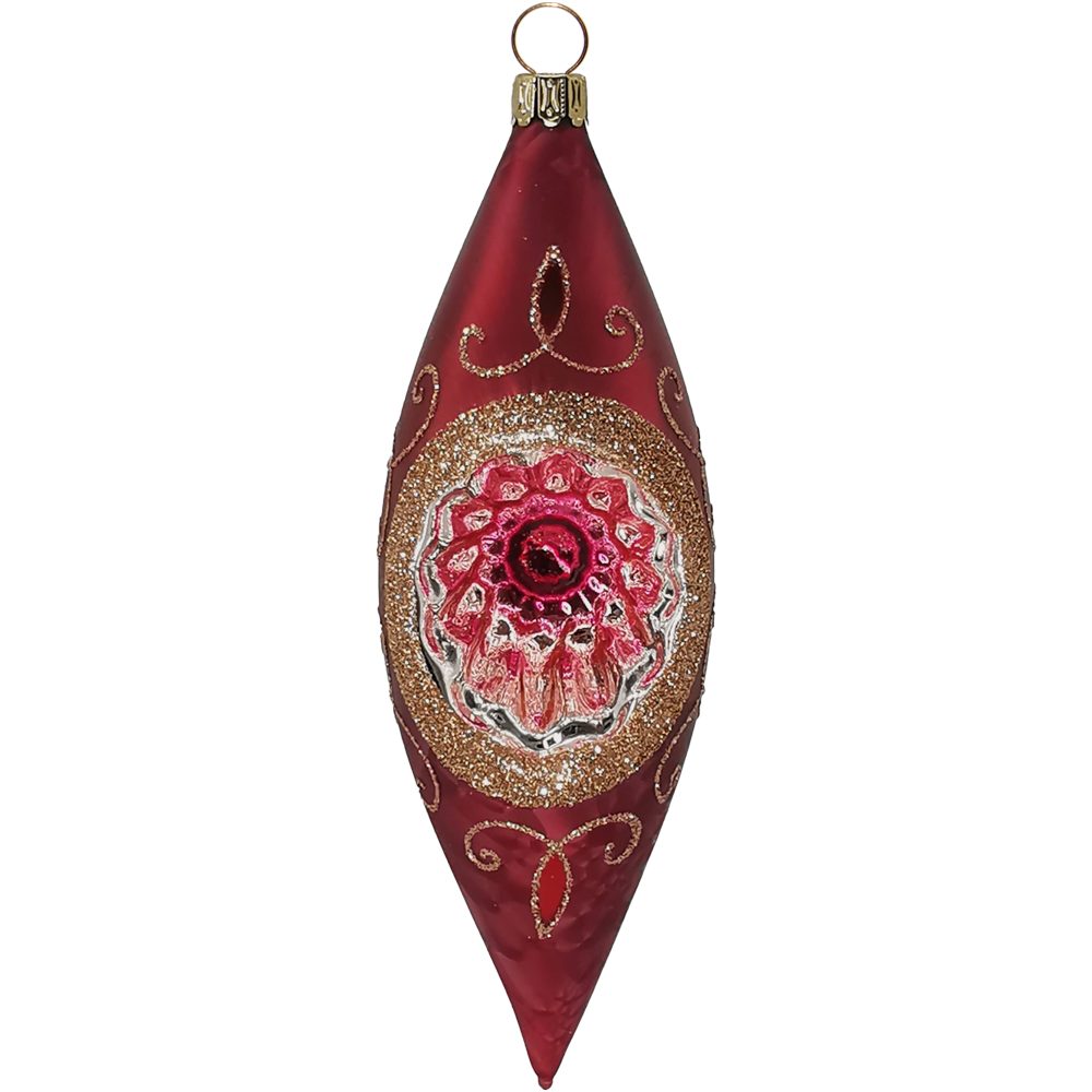 Schatzhauser Christbaumschmuck Reflex Olive Spitzenbordüre Marsalarot Eis 15cm (1-tlg), mundgeblasen, handbemalt