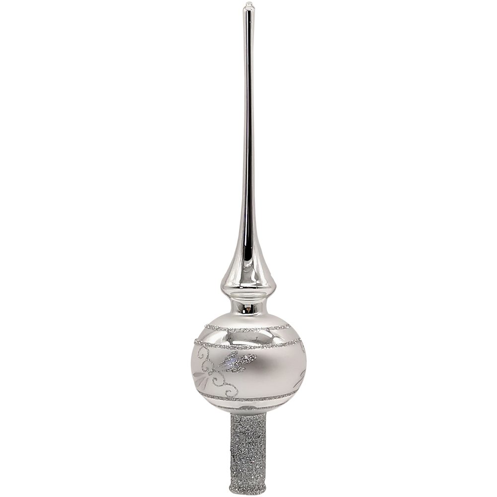 Schatzhauser Christbaumspitze Spitze silber Ø 7cm/ 28cm (1-tlg), mundgeblasen, handbemalt