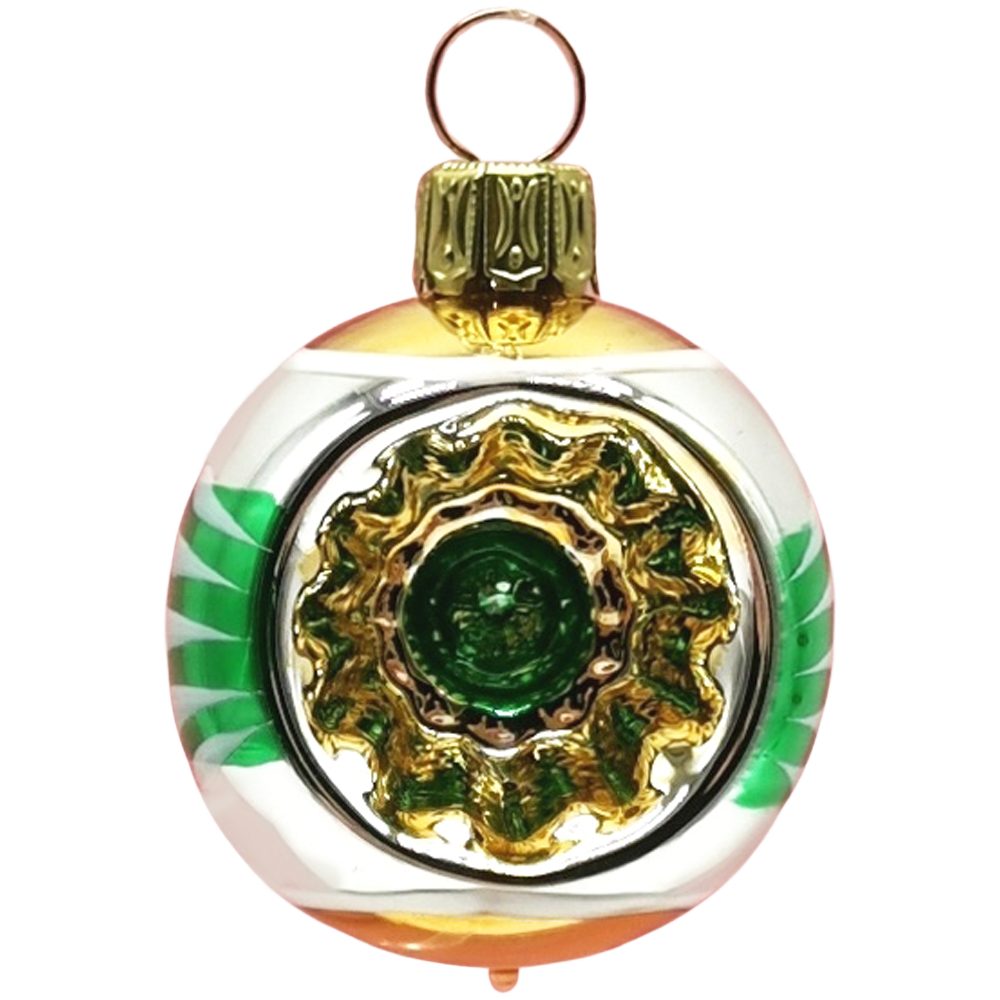 Schatzhauser Weihnachtsbaumkugel Retro Mini Reflexkugel silber/grün/gold Ø 4cm (1 St), mundgeblasen, handbemalt